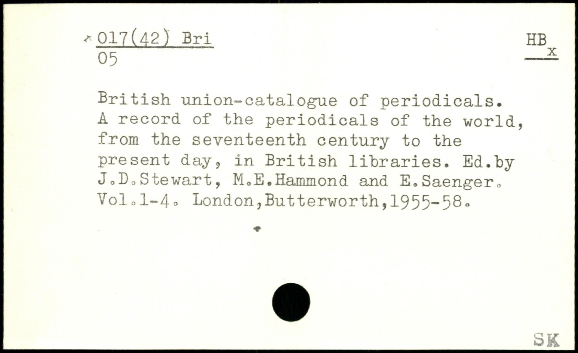 British union-catalogue of periodicals. A record of the periodicals of the world, from the seventeenth century to the present day, in British libraries. Ed.by J0D0Stewart, M0E.Hammond and E.Saenger0 Volol-4