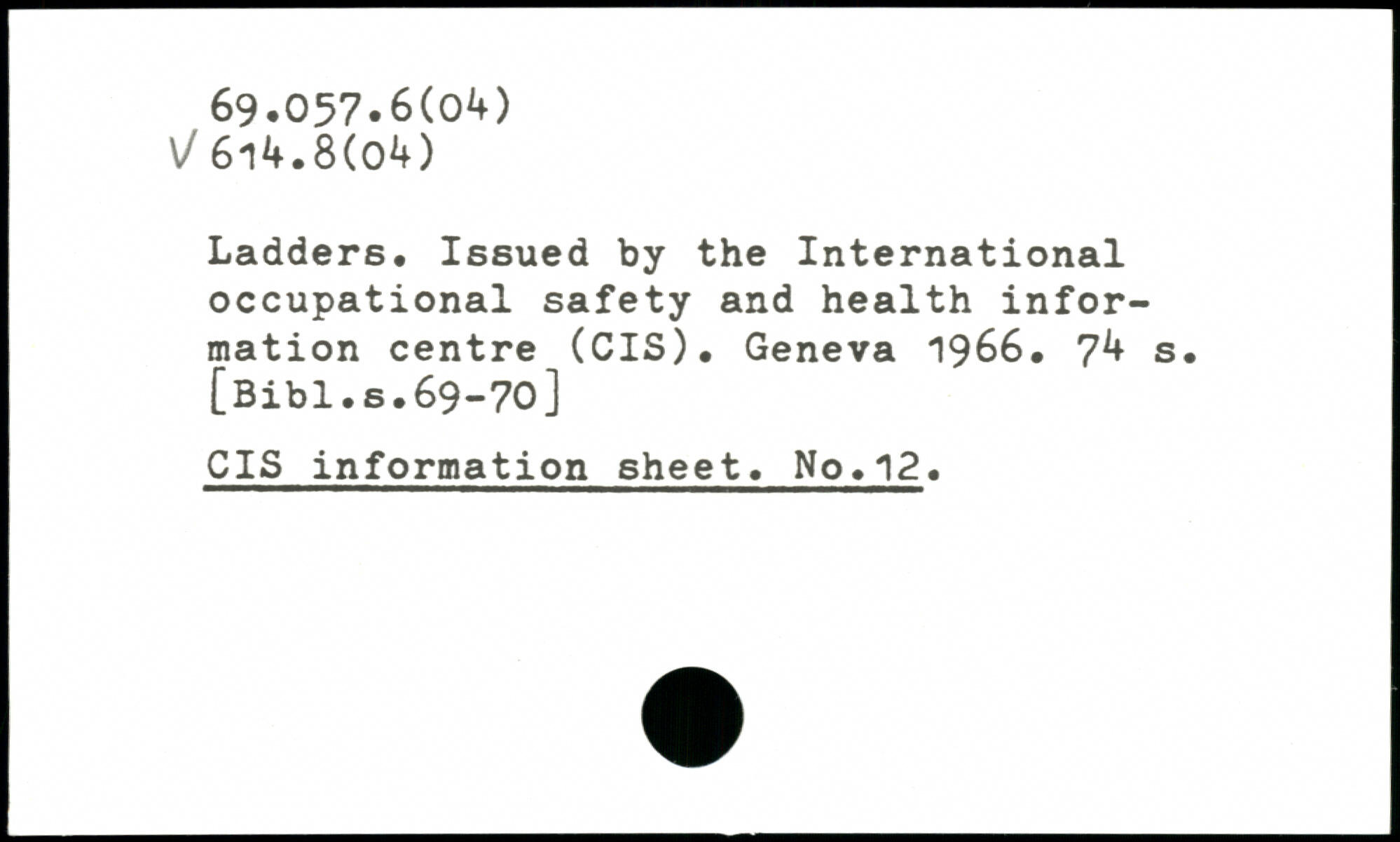 Ladders. Issued by the International occupational safety and health information centre (CIS).