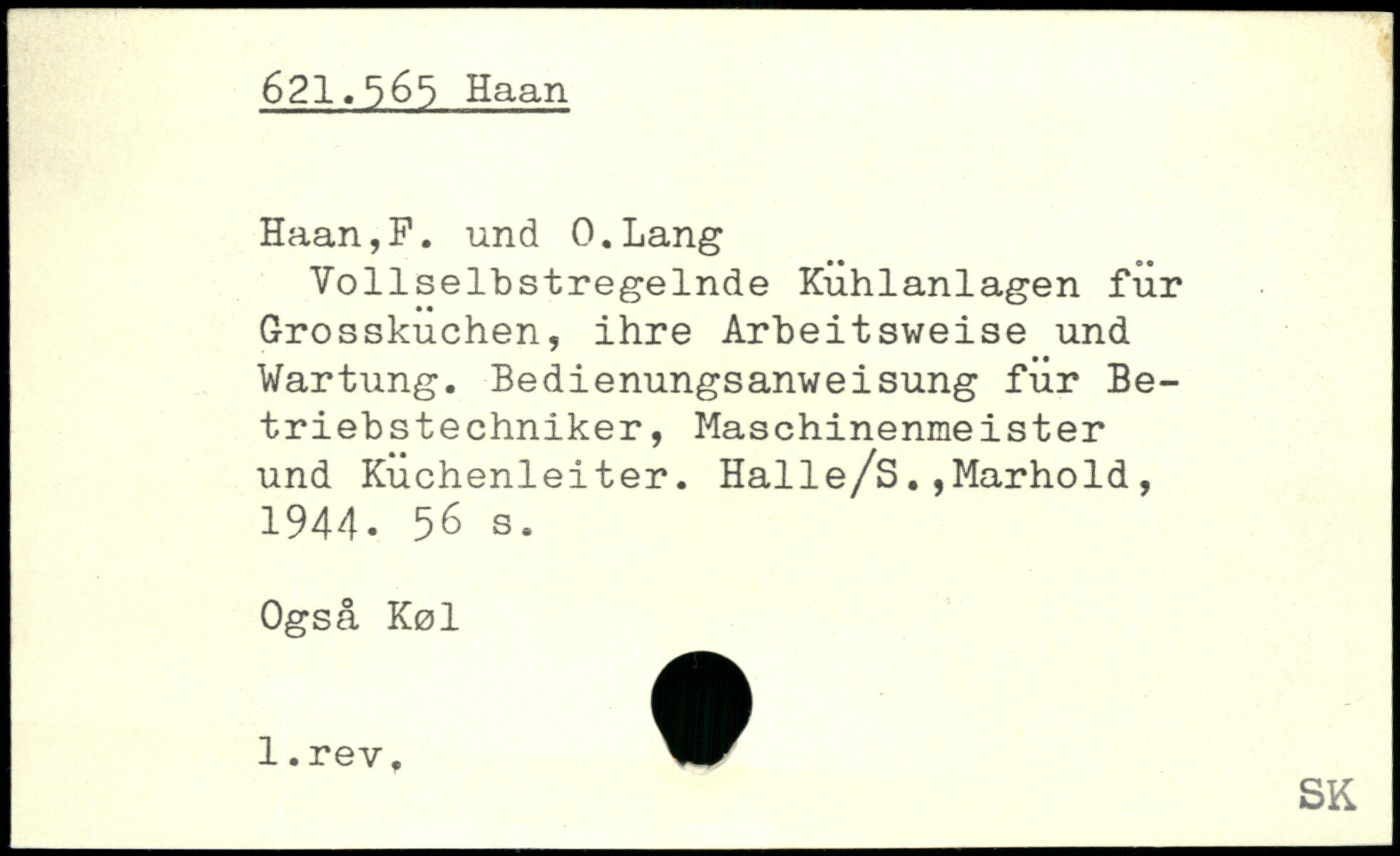 Vollselbstregelnde Kühlanlagen fiir Grosskuchen, ihre Arbeitsweise und Wartung. Bedienungsanweisung für Betriebstechniker , Maschinenmeister und Kuchenleiter.