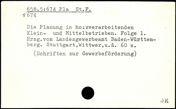 Die Planung in holzverarbeitenden Klein- und Mittelbetrieben. Folge 1. Hrsg.vom Landesgewerbeamt Baden-Württemberg. Stuttgart,Wittwer,u.ä.