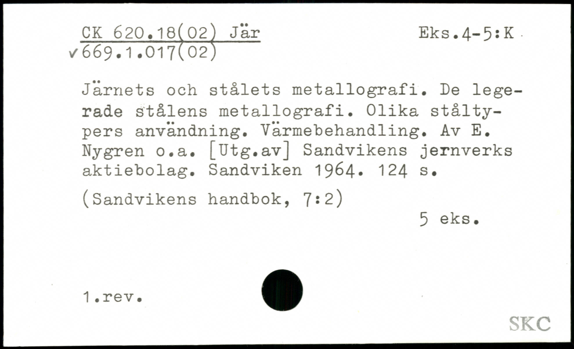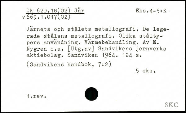 Järnets och stålets metallografi. De lege-rade stålens metallografi. Olika ståltypers användning. Värmebehandling. Av E. Nygren o.a.