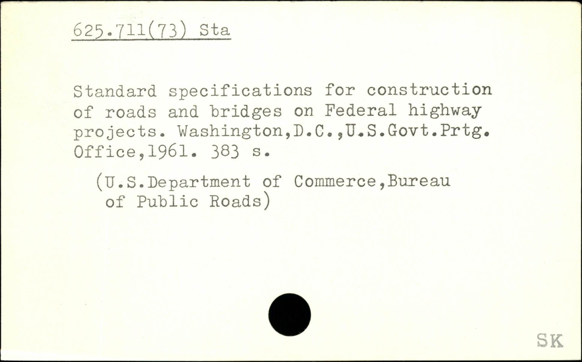 Standard specifications for construction of roads and bridges on Federal highway projects. Washington,D.C.,U.S.Govt.Prtg. Office,1961.