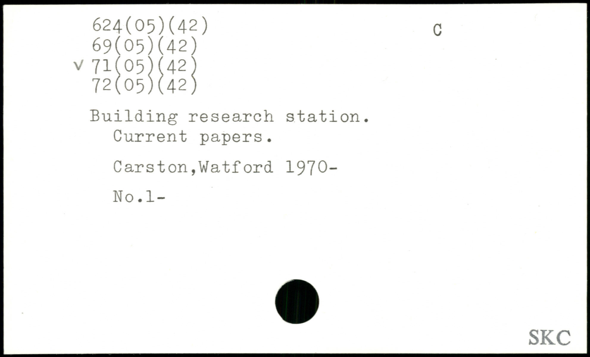 Building research station. Current papers. CarstonjWatford 1970- No.1-