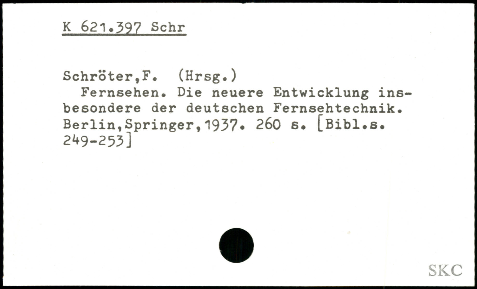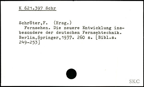 Fernsehen. Die neuere Entwicklung insbesondere der deutschen Fernsehtechnik. Berlin,Springer, '1937.