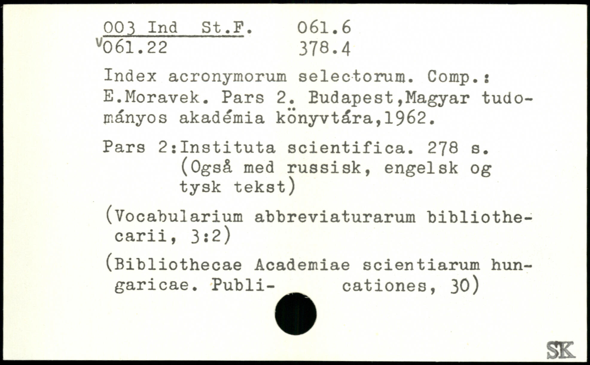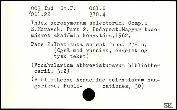 Index acronymorum selectorum. Comp.: E.Moravek. Pars 2.