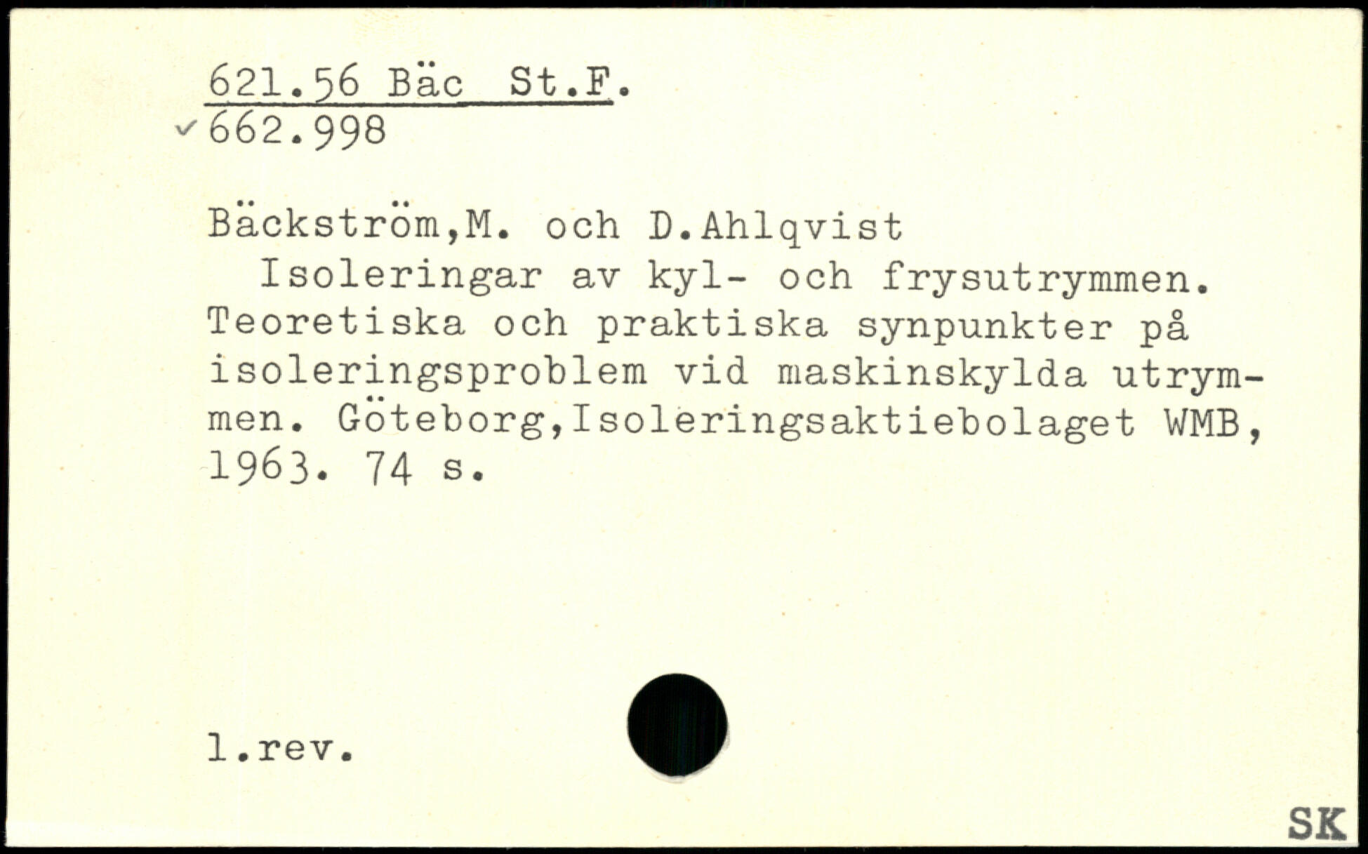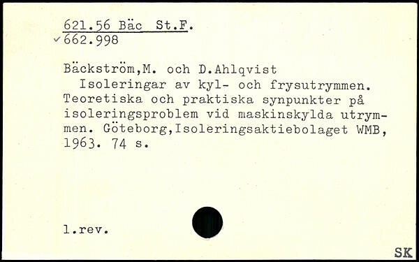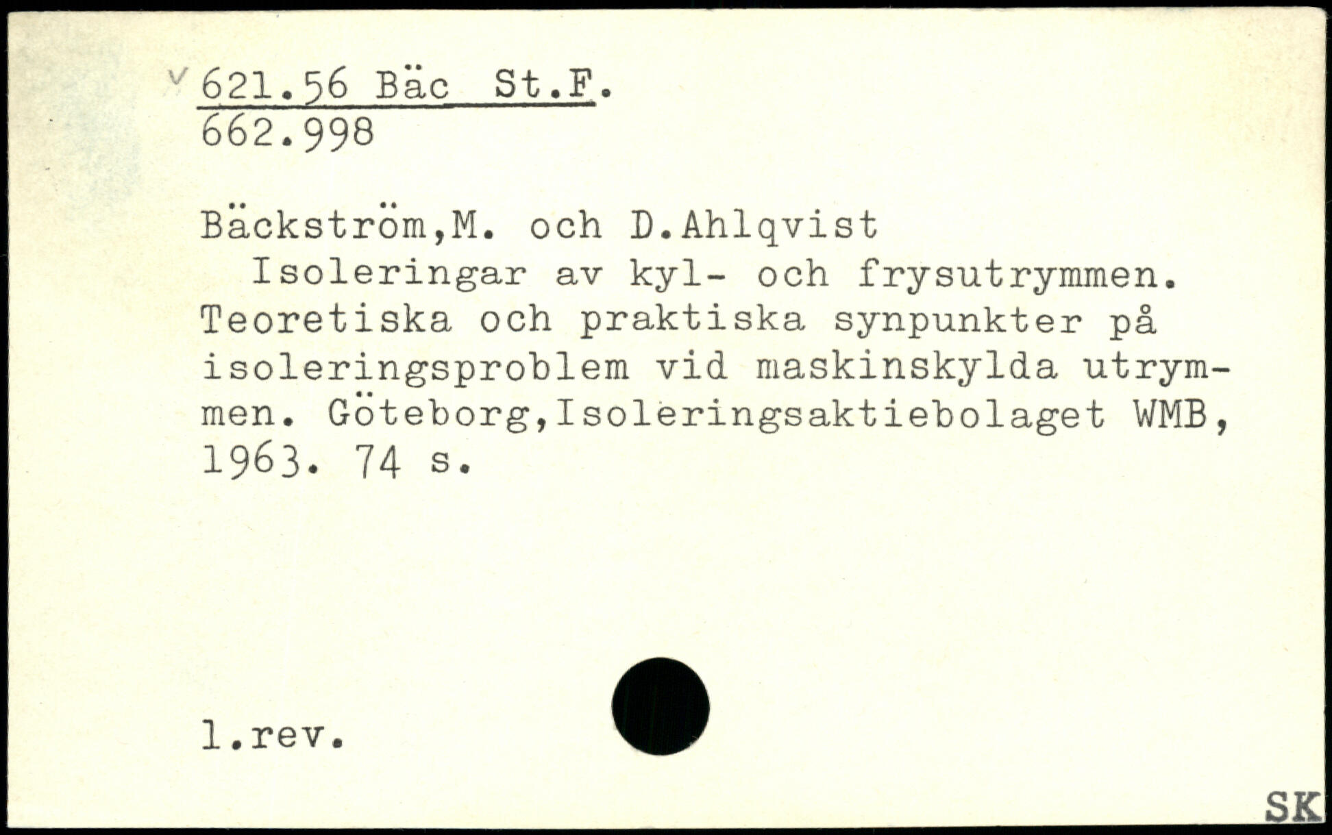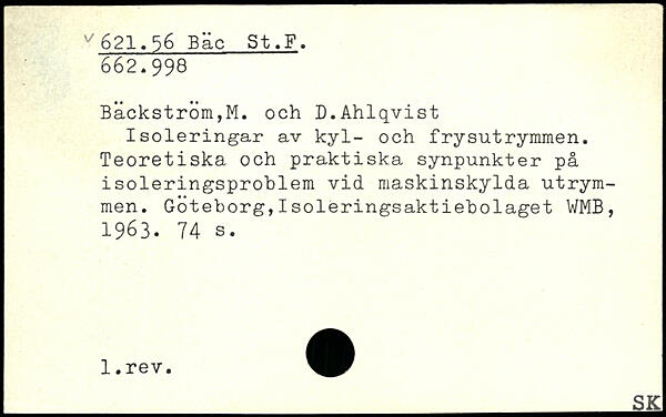 Isoleringar av kyl- och frysutrymmen. Teoretiska och praktiska synpunkter på isoleringsproblem vid maskinskylda utrymmen.