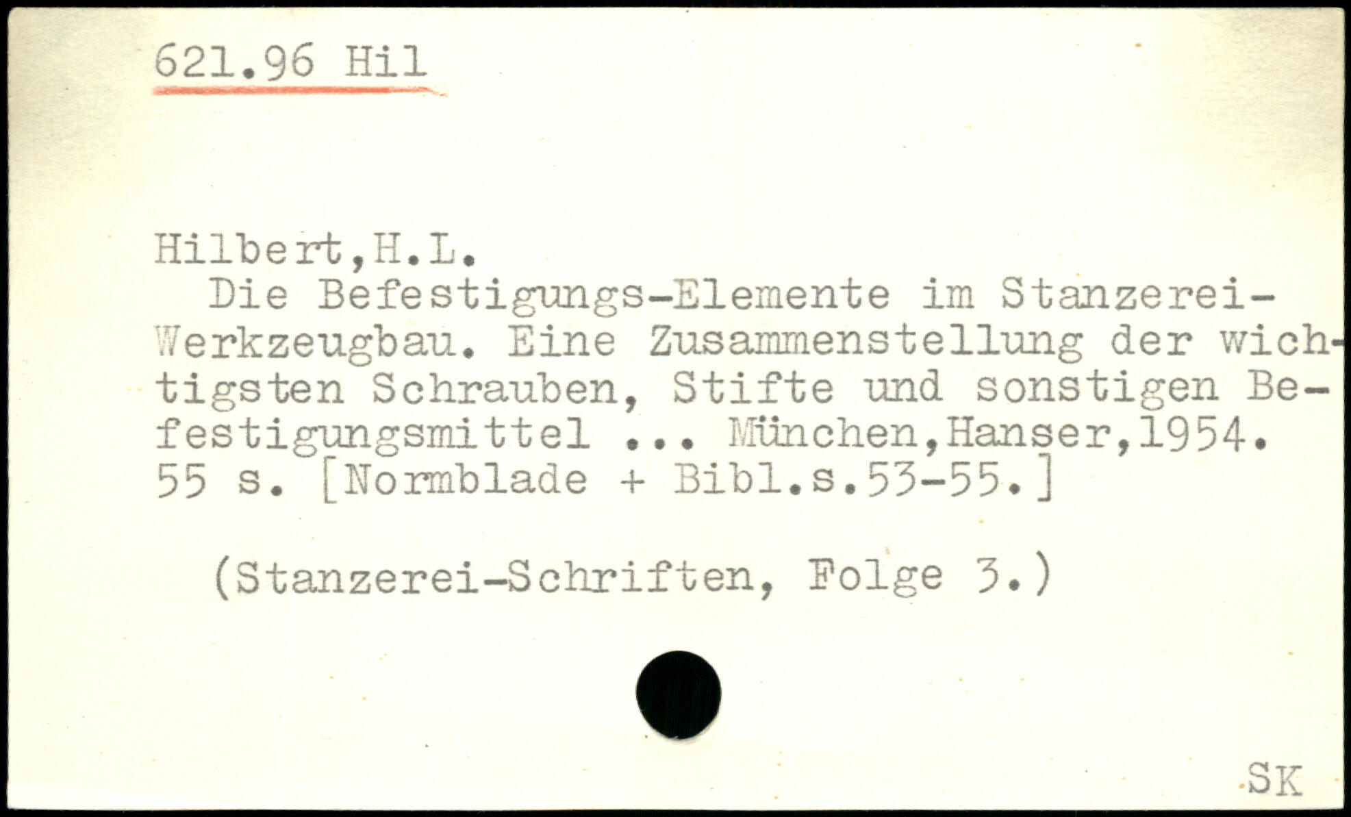 Die Befestigungs-Elemente im Stanzerei-Werkzeugbau. Eine Zusammenstellung der wichtigsten Schrauben, Stifte und sonstigen Be-festigungsmittel ...