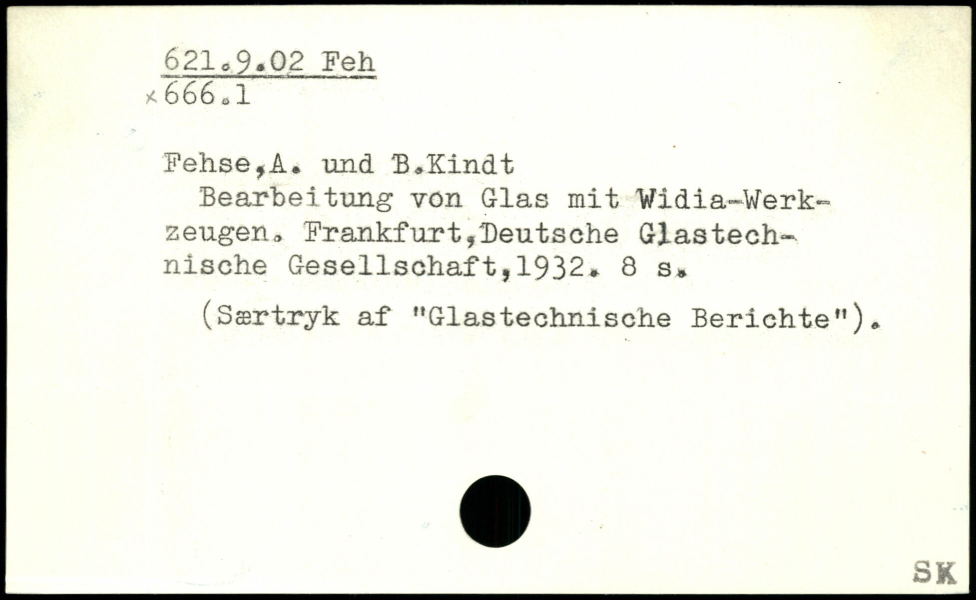 Bearbeitung von Glas mit Widia-Verk-zeugen,