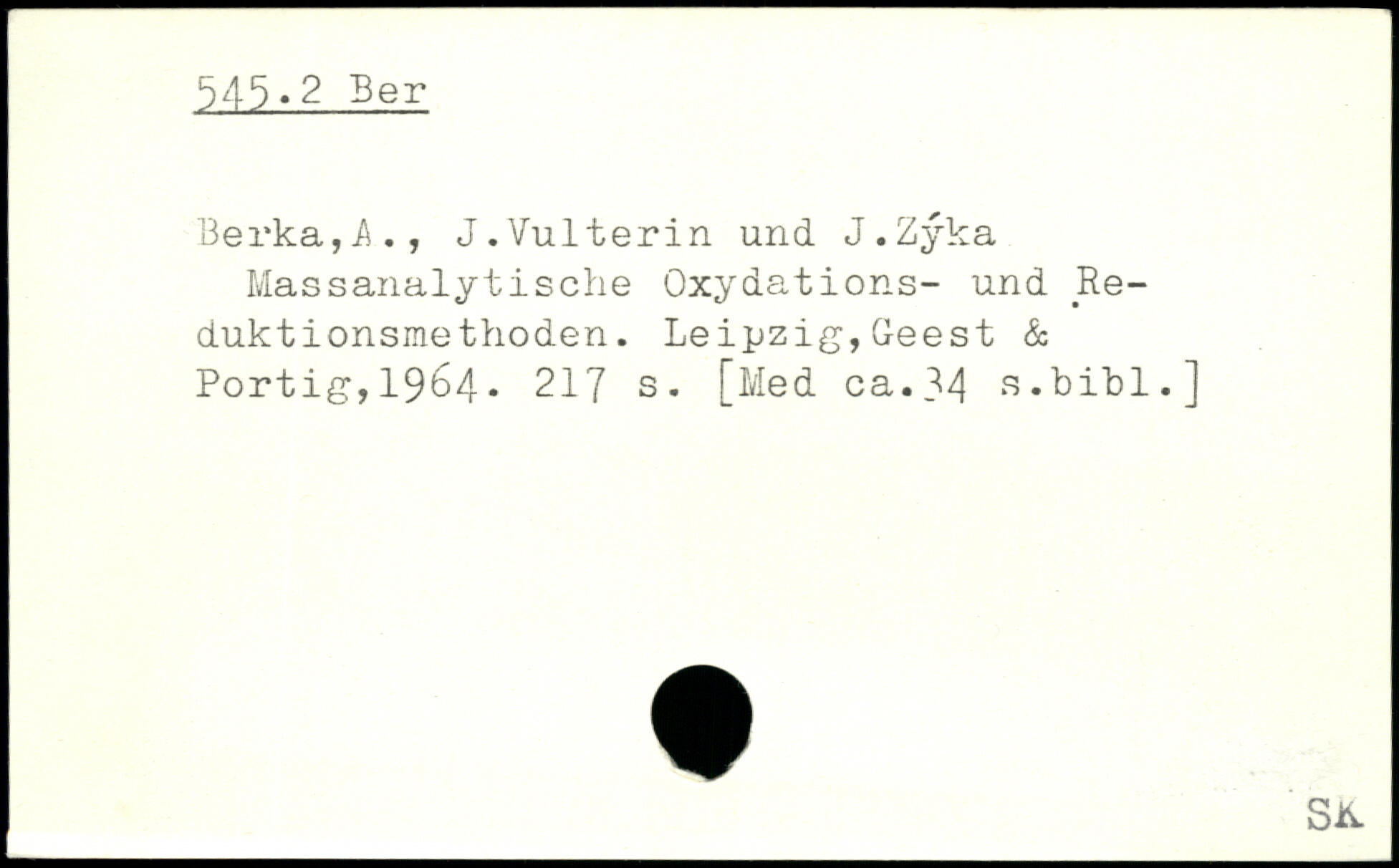 Berka,J\., J.Vulterin und J.Zÿka Massanalytische Oxydations- und Re-duktionsmethoden.