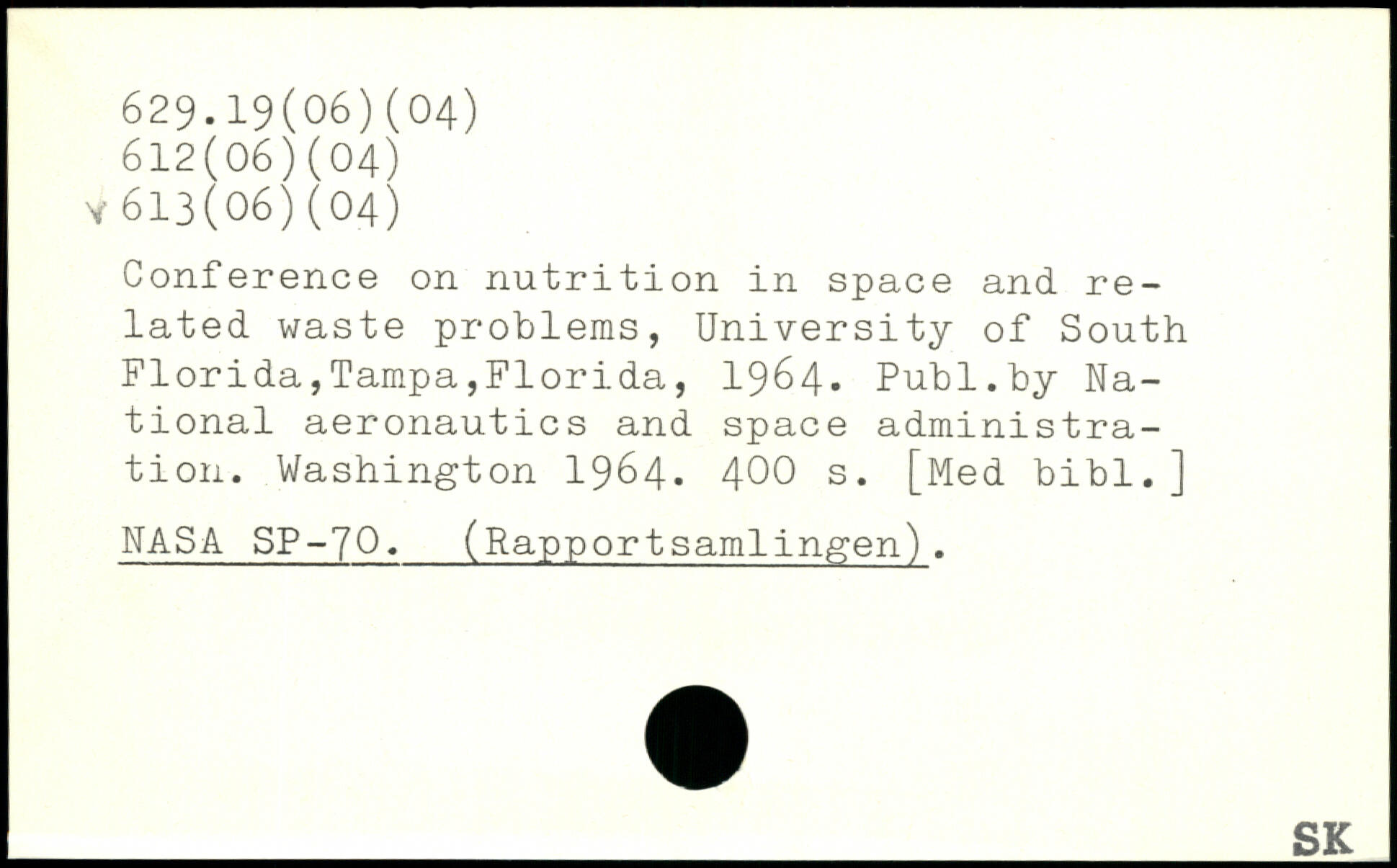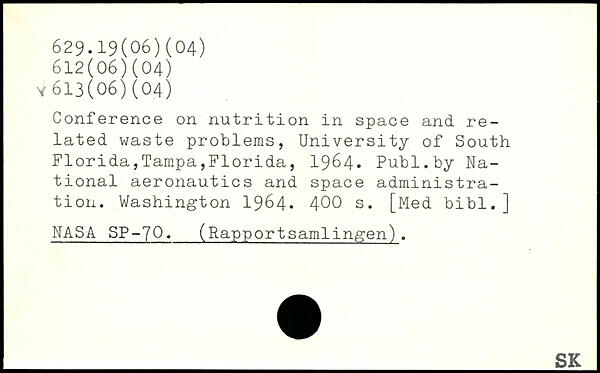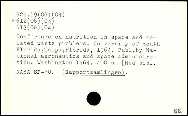 Conference on nutrition in space and related waste problems