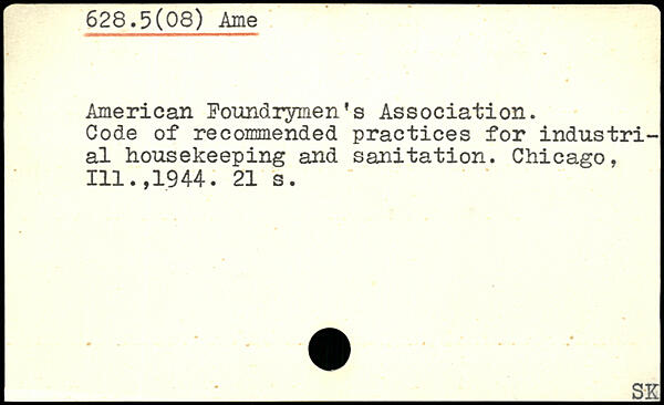 American Foundrymen' s Association. Code of recommended practices for industrial housekeeping and sanitation. Chicago, 111.,1944.