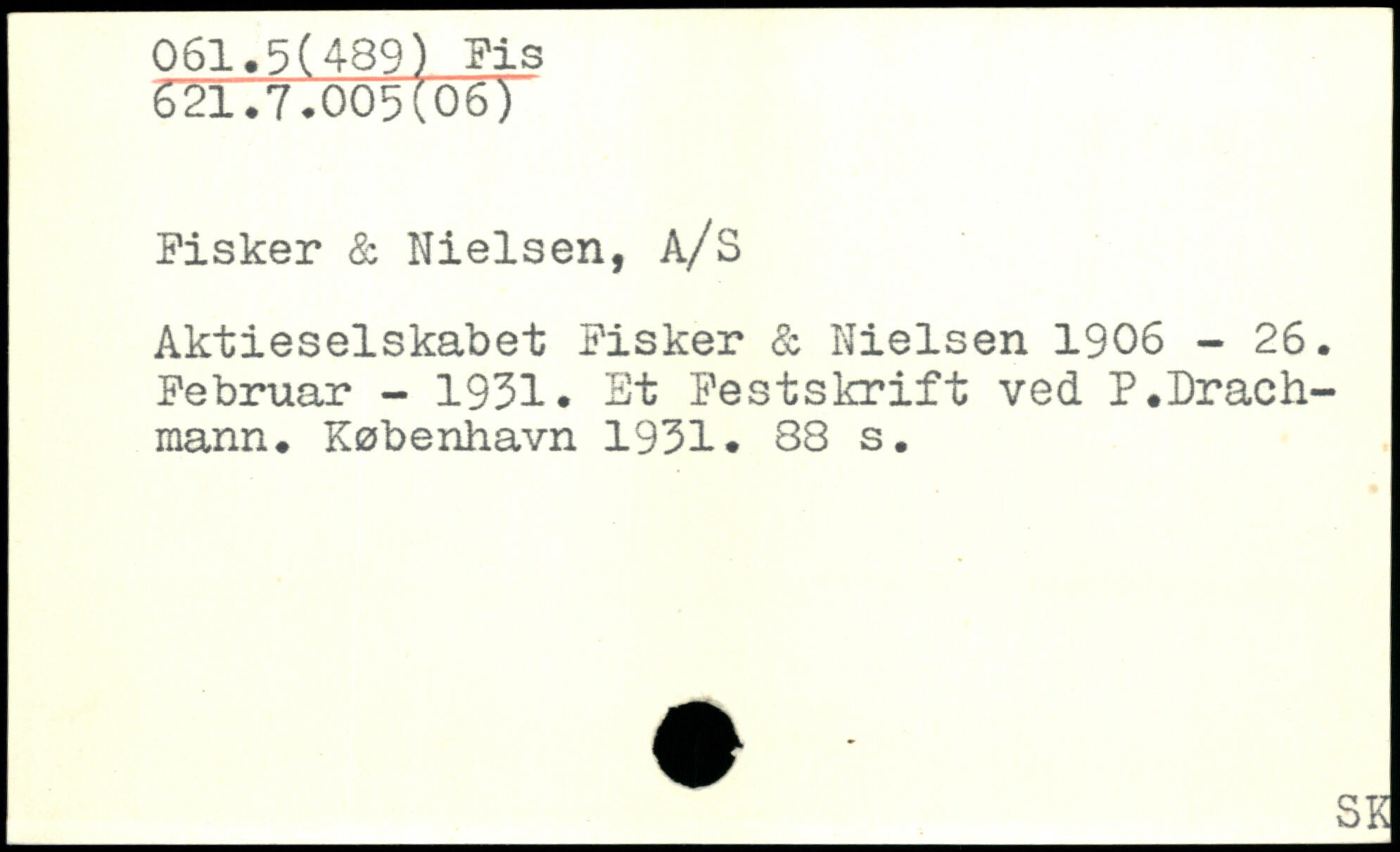 Aktieselskabet Fisker & Nielsen 1906 - 26. Februar - 1931. Et Festskrift ved P.Drach-inann.