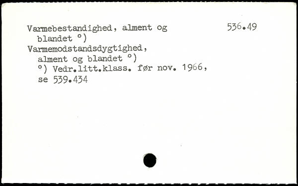 Varmebestandighed, alment og 536.49 blandet .) Varmemodstandsdygtighed, alment og blandet .) .) Vedr.litt.klass. før nov. 1966, se 539.434