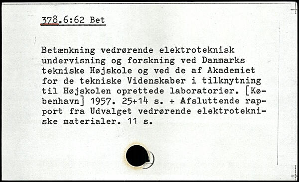 Betænkning vedrørende elektroteknisk undervisning og forskning ved Danmarks tekniske Højskole og ved de af Akademiet for de tekniske Videnskaber i tilknytning til Højskolen oprettede laboratorier.