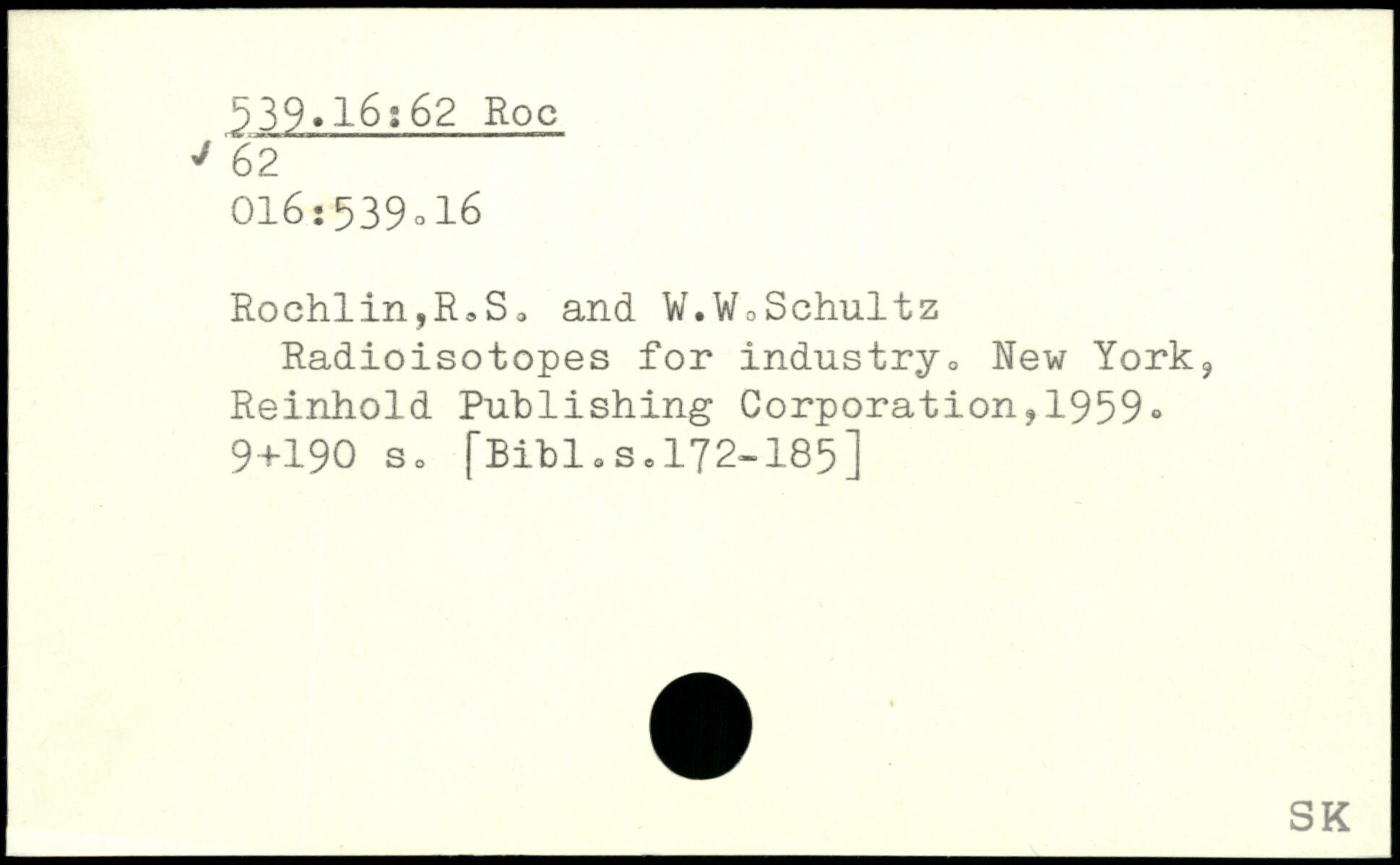 Rochlin,R3S3 and W.W^Schultz Radioisotopes for industry..