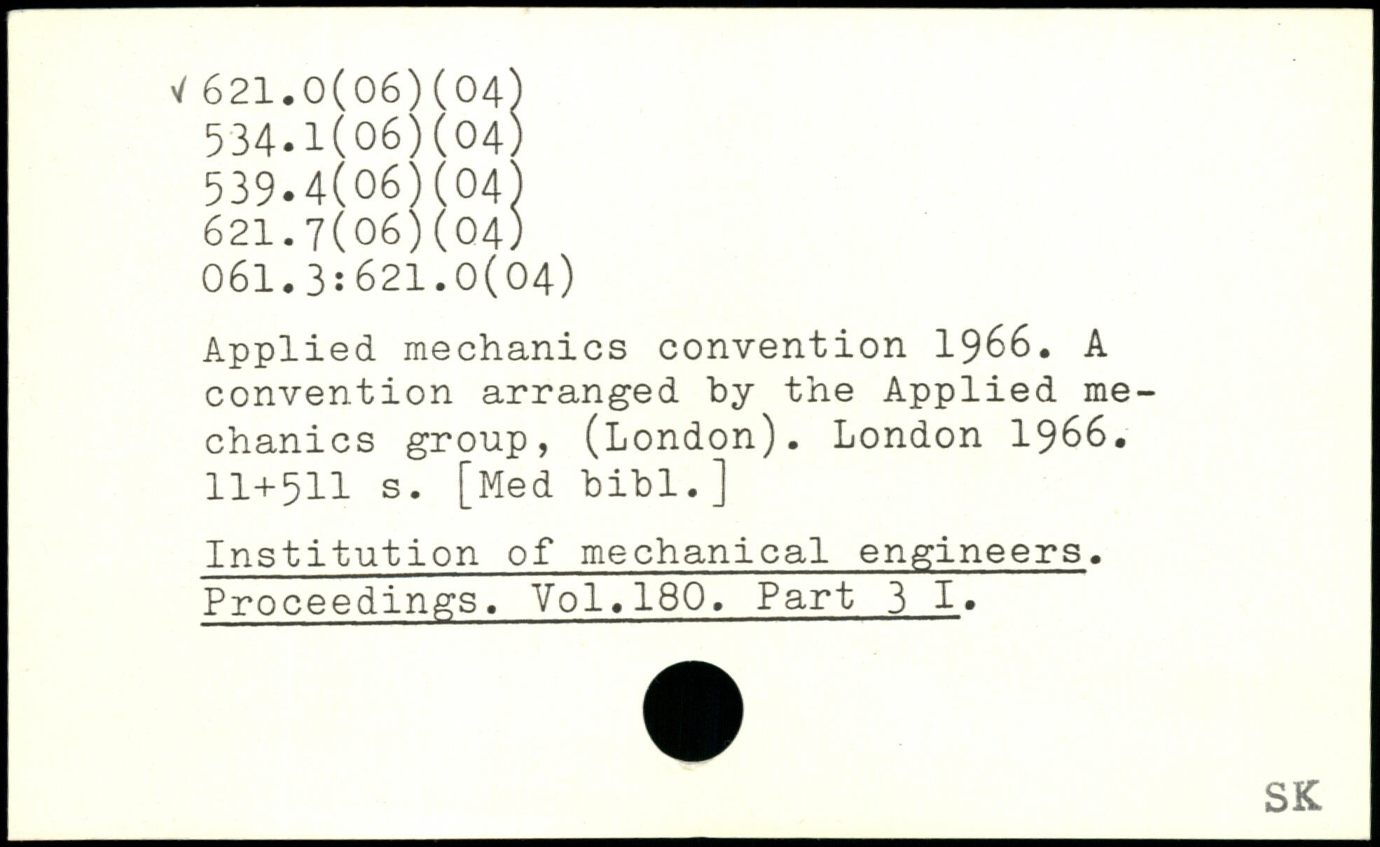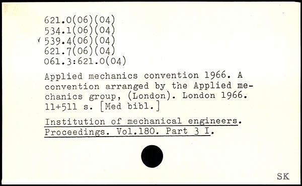 Applied mechanics convention 1966. A convention arranged by the Applied mechanics group, (London).