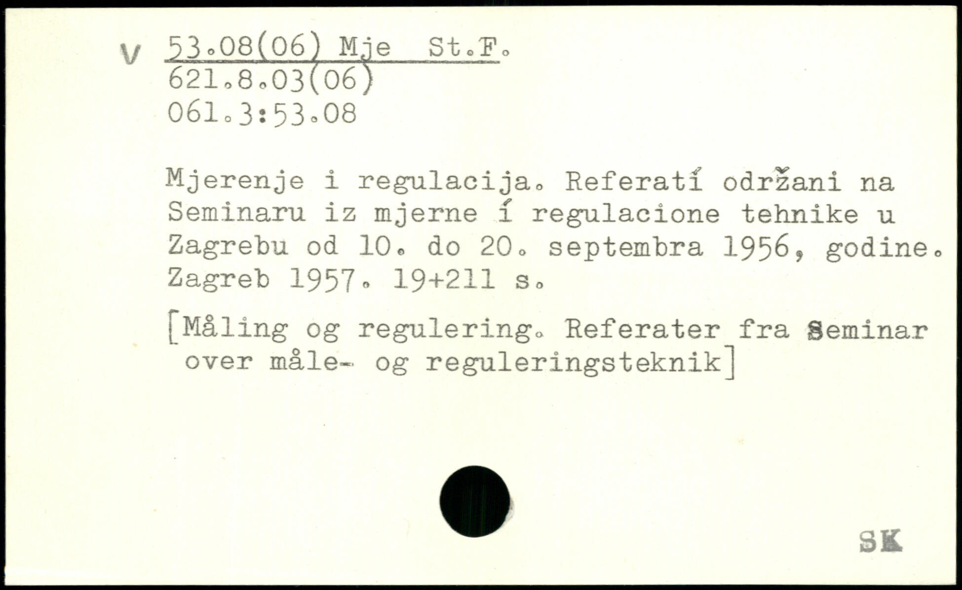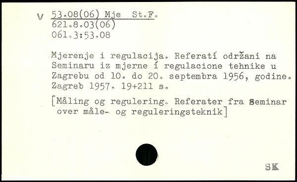 Mjerenje i regulacija, Referat! odrzani na Seminaru iz mjerne i regulacione tehnike u Zagrebu od 10, do 20, septembra 195^, godine, Zagreb 1957