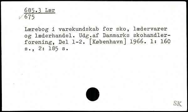 Lærebog i varekundskab for sko, lædervarer og læderhandel. Udg.af Danmarks skohandler-forening, Del 1-2.