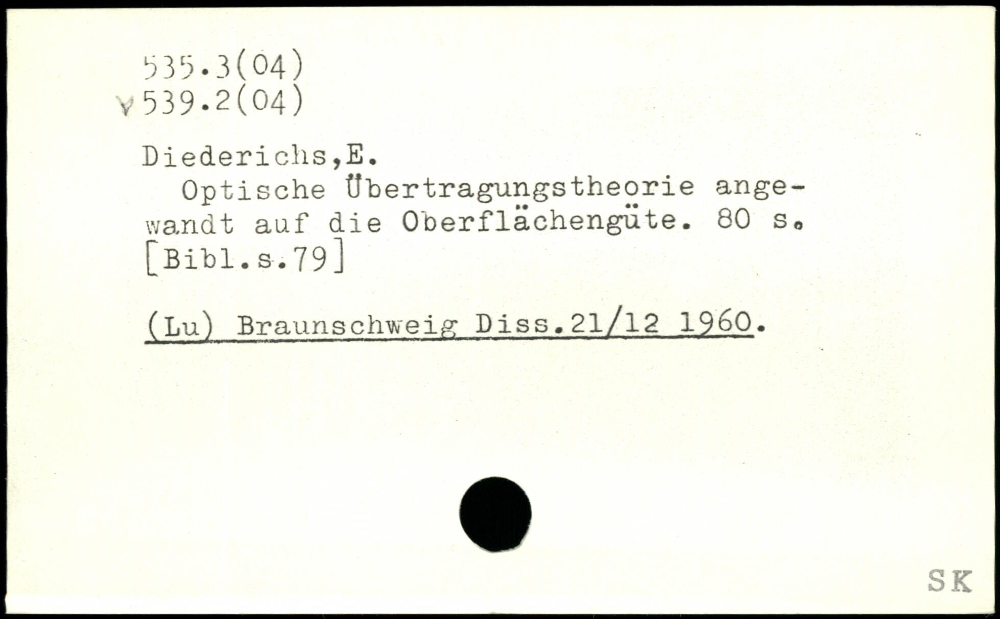 Optische Ubertragungstheorie angewandt auf die Oberflächengüte.