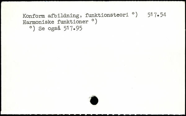Konform afbildning, funktionsteori .) 517.54 Harmoniske funktioner .) .) Se også 517.95