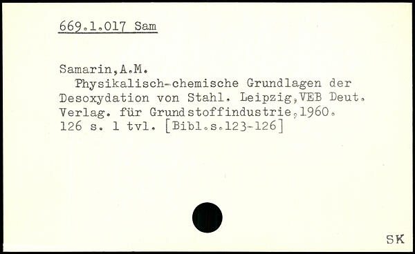 Physikalisch-chemische Grundlagen der Desoxydation von Stahl. Leipzig?VEB Deut. Verlag, für Grundstoffindustrie91960.