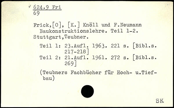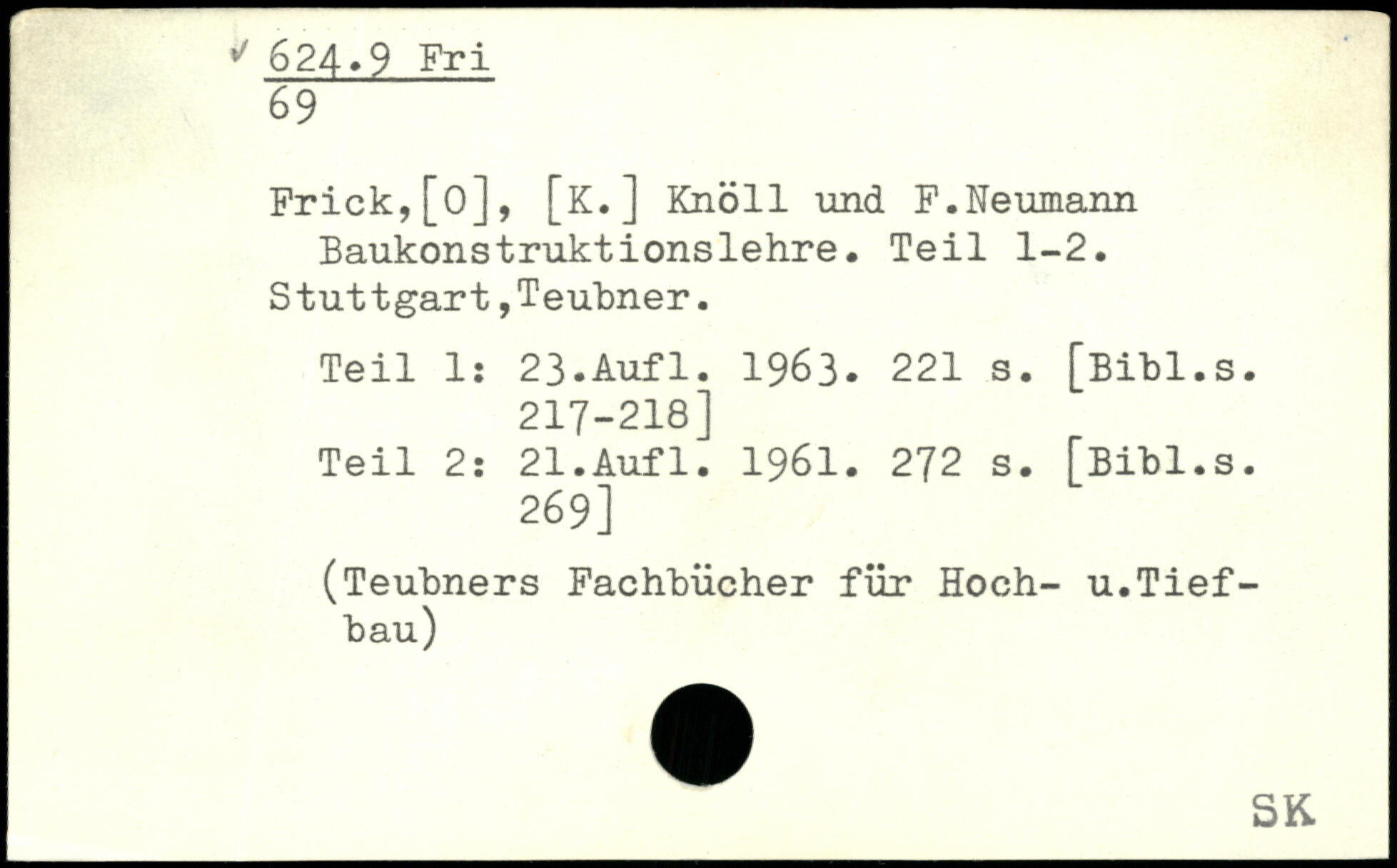 Frick,[o], [K.] Knöll und F.Neumann Baukonstruktionslehre. Teil 1-2. S tuttgart,Teubner. Teil 1: