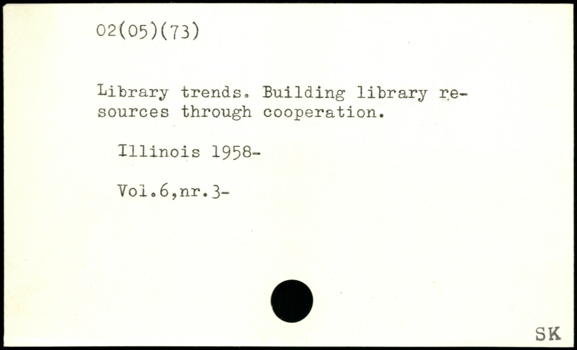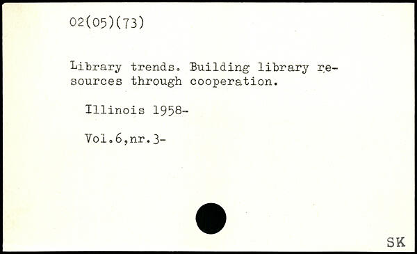 Library trends. Building library resources through cooperation. 1111nois 1958- Yoi.6,nr.3-
