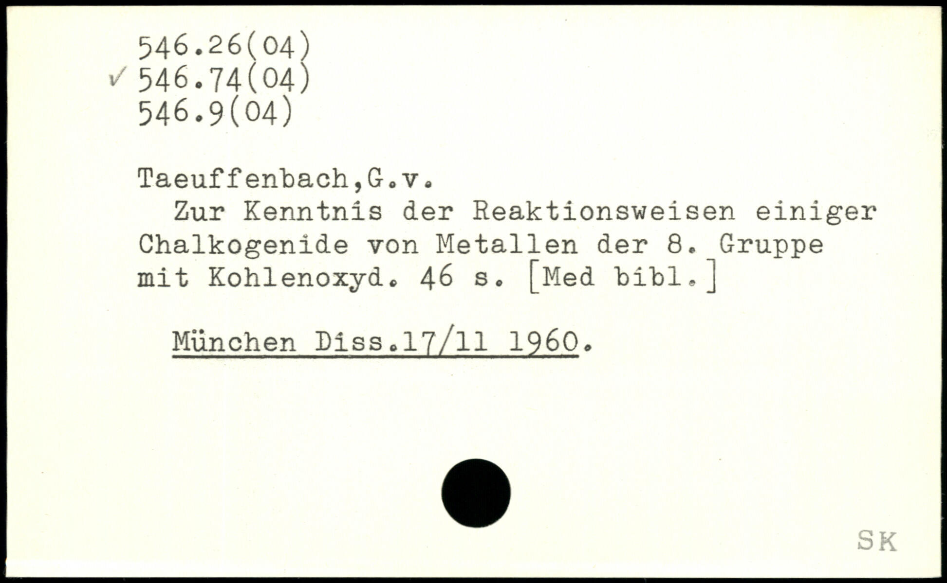 Taeuf f enhach, G 0 v. Zur Kenntnis der Reaktionsweisen einiger Chalkogenide von Metallen der 8. Gruppe mit Kohlenoxyde