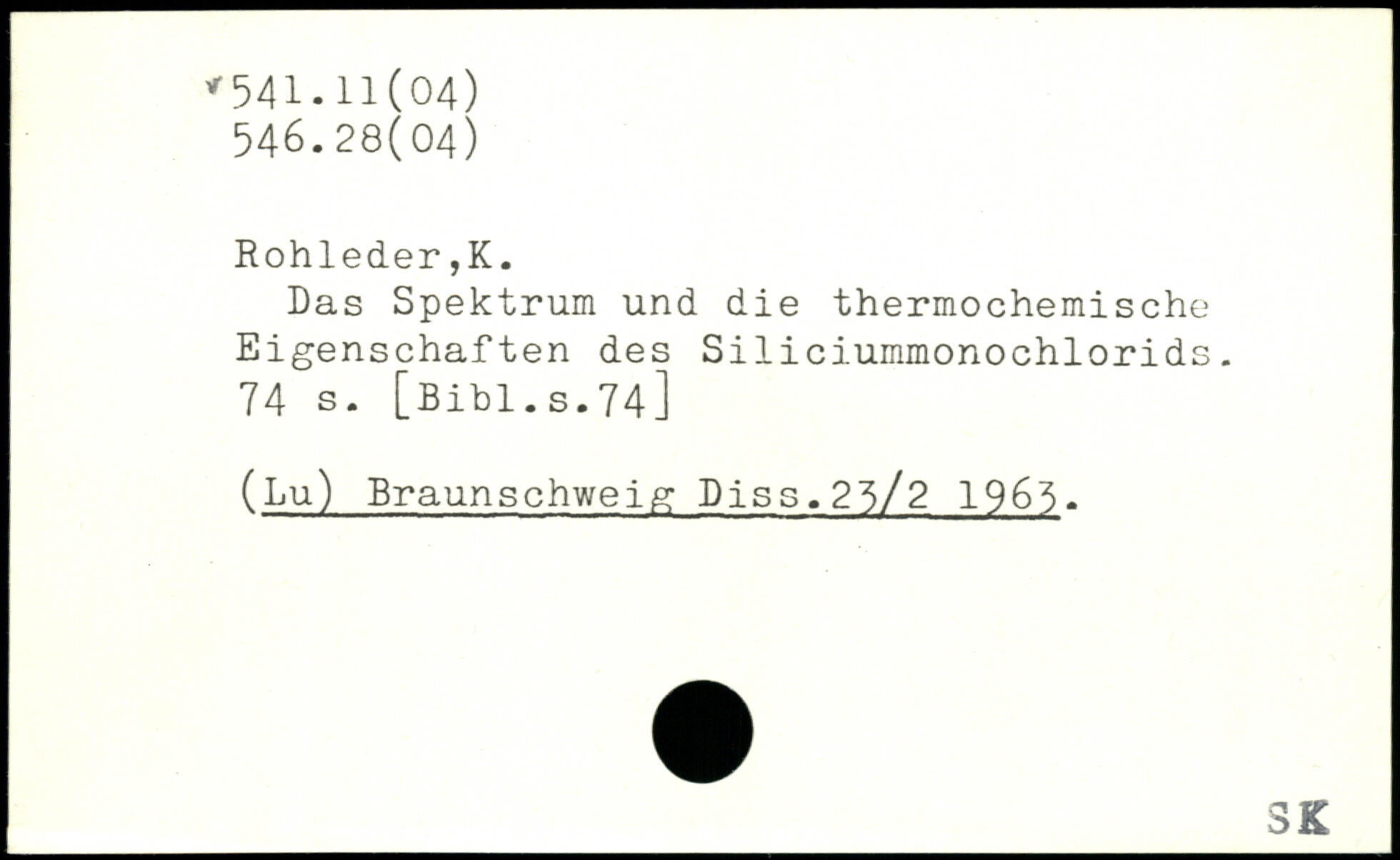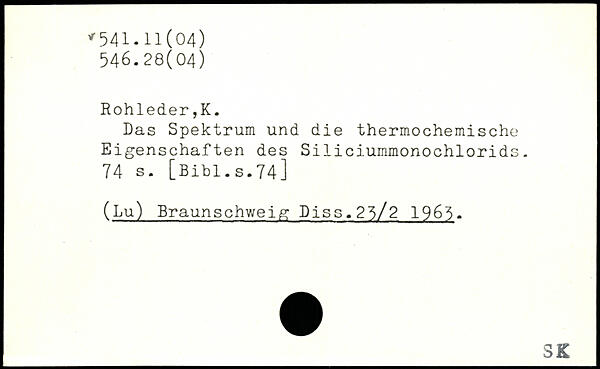 Das Spektrum und die thermochemische Eigenschaften des Siliciummonochlorids.