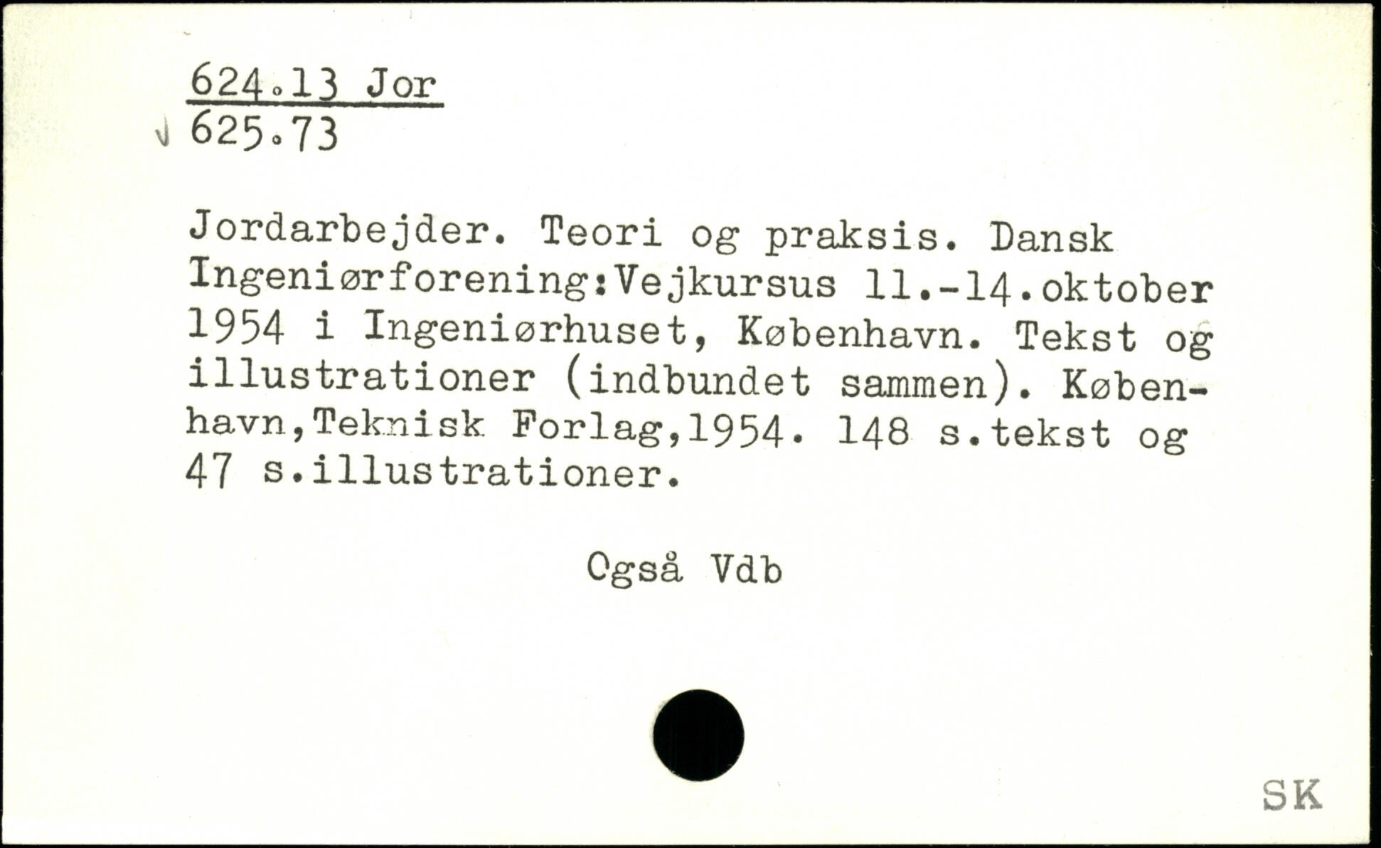 Jordarbejder. Teori og praksis. Dansk Ingeniørforening:Vejkursus 11.-14.oktober 1954 i Ingeniørhuset, København. Tekst og illustrationer (indbundet sammen).