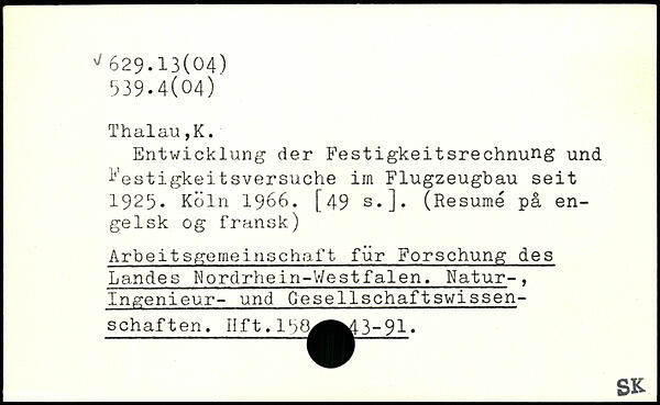 Entwicklung der Festigkeitsrechnung und l’’estigkeitsversuche iin Flugzeugbau seit 1925.