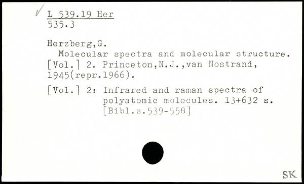 Molecular spectra and molecular structure. [Vol.~] 2. Princeton,N. J. , van Nostrand, 1945(repr.1966).