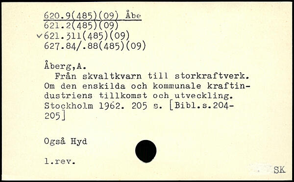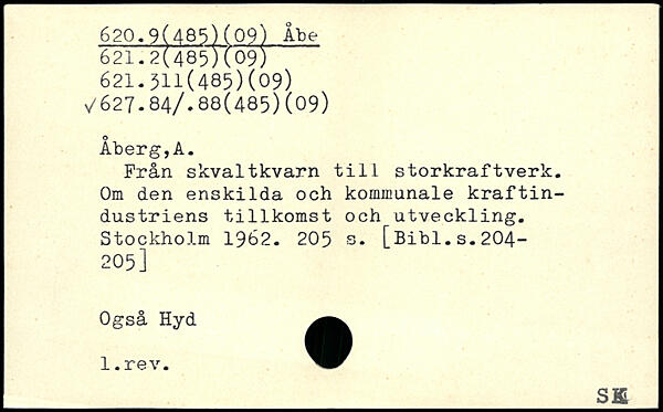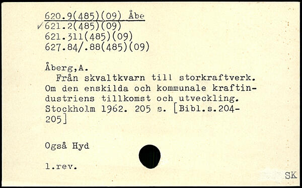 Från skvaltkvarn till storkraftverk. Om den enskilda och kommunale kraftindustriens tillkomst och utveckling.