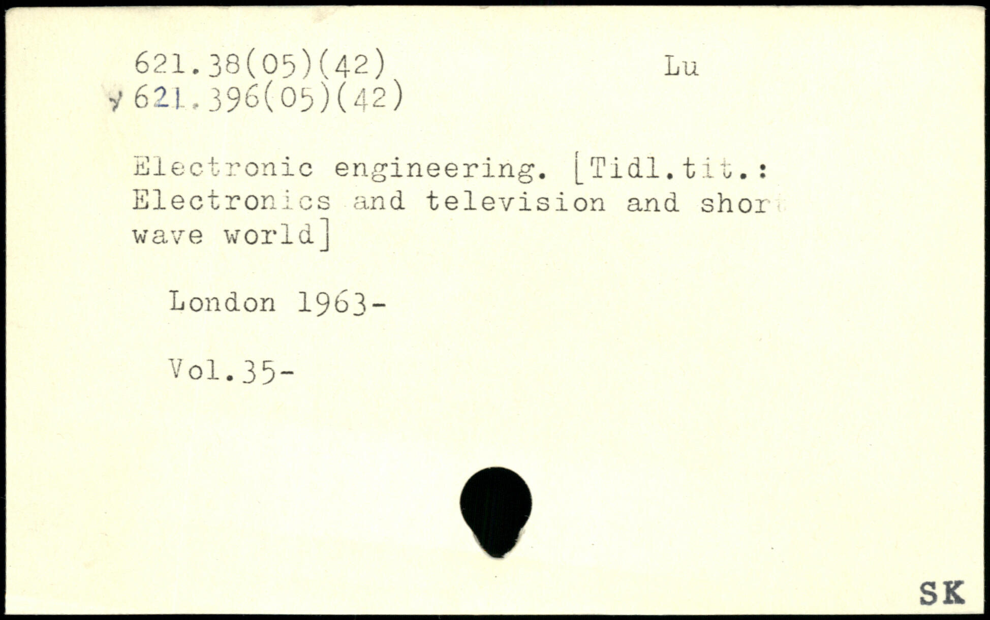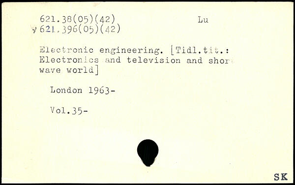 Electronic engineering. [Tidl.tit.: Electronics and television and shoi wave world]