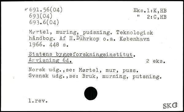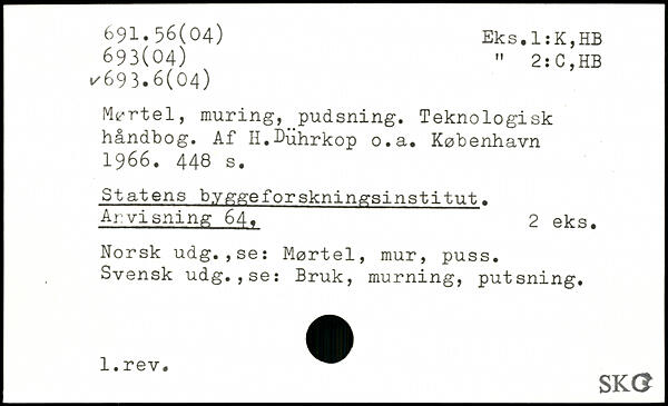 Mørtel, muring,^pudsning. Teknologisk håndbog. Af H.Duhrkop o.a.