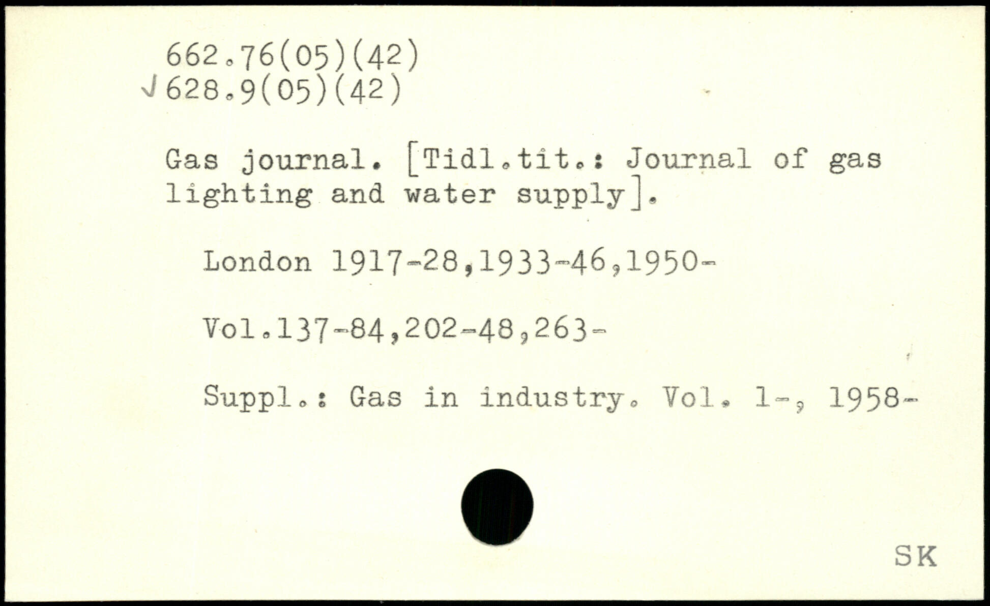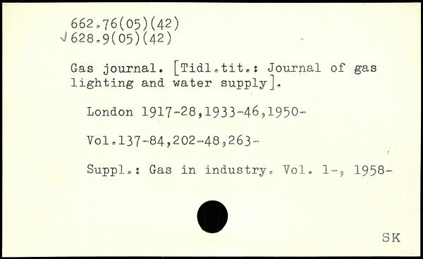 Gas journal. [Tidl.tit.s Journal of gas lighting and water supply]