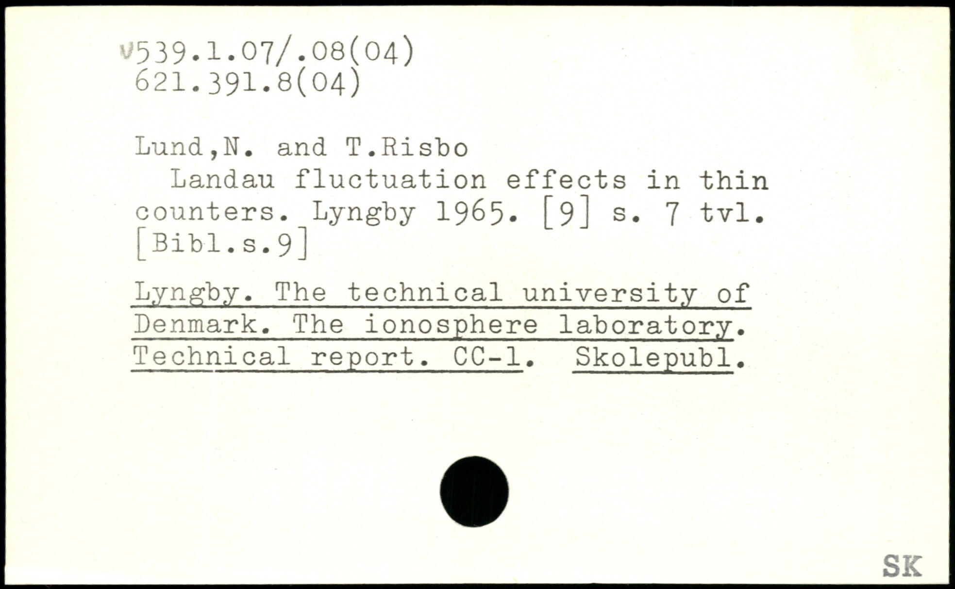 Landan fluctuation effects in thin counters. Lyngby 1965, [9] s. 7 tvl.