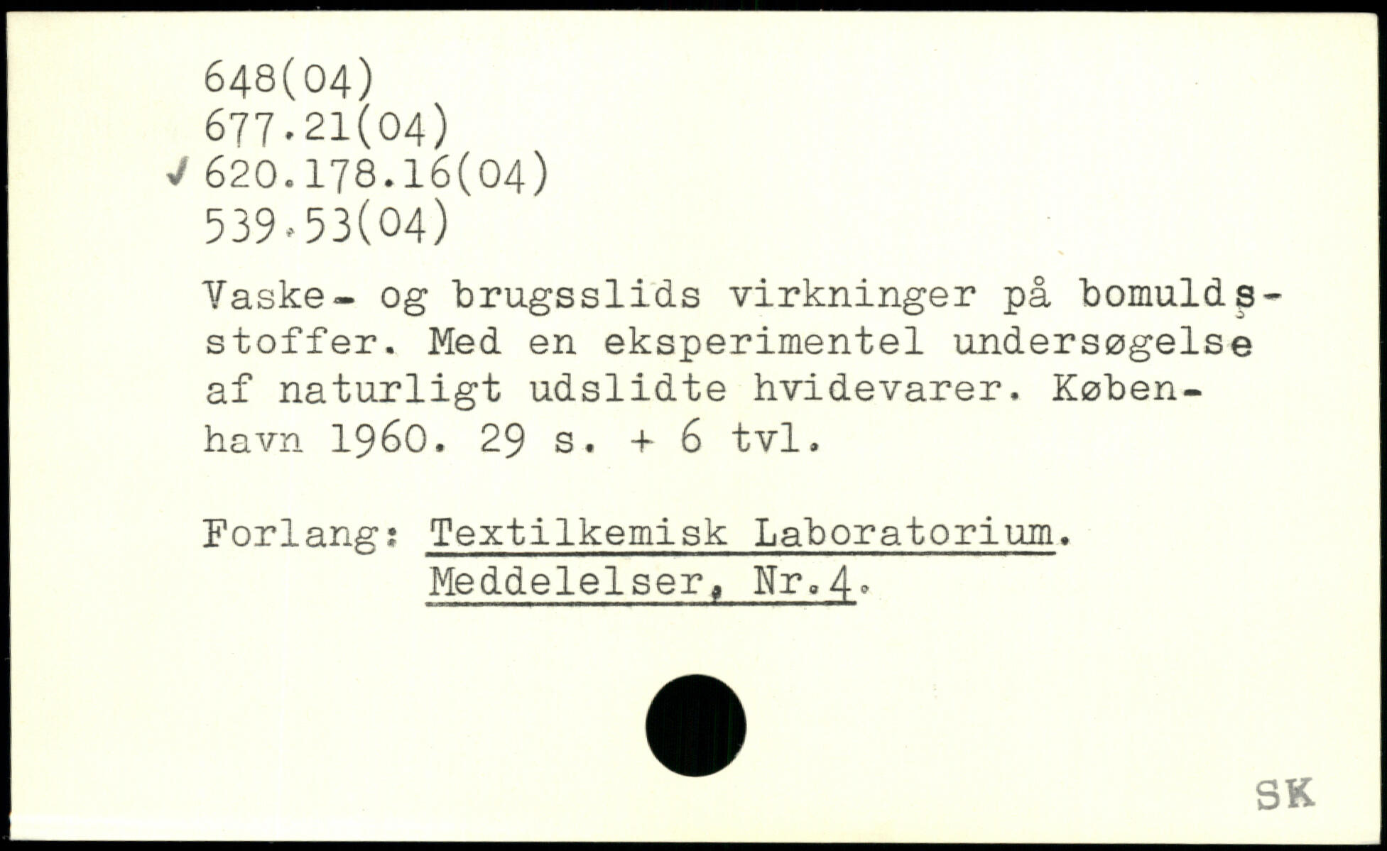Vaske- og brugsslids virkninger på bomuldsstoffer. Med en eksperimentel undersøgelse af naturligt udslidte hvidevarer.