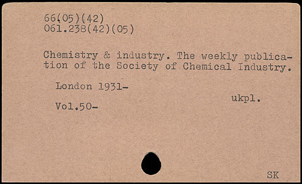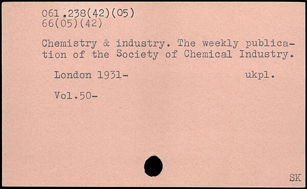 Chemistry & industry. The weekly publication of the Society of Chemical Industry.
