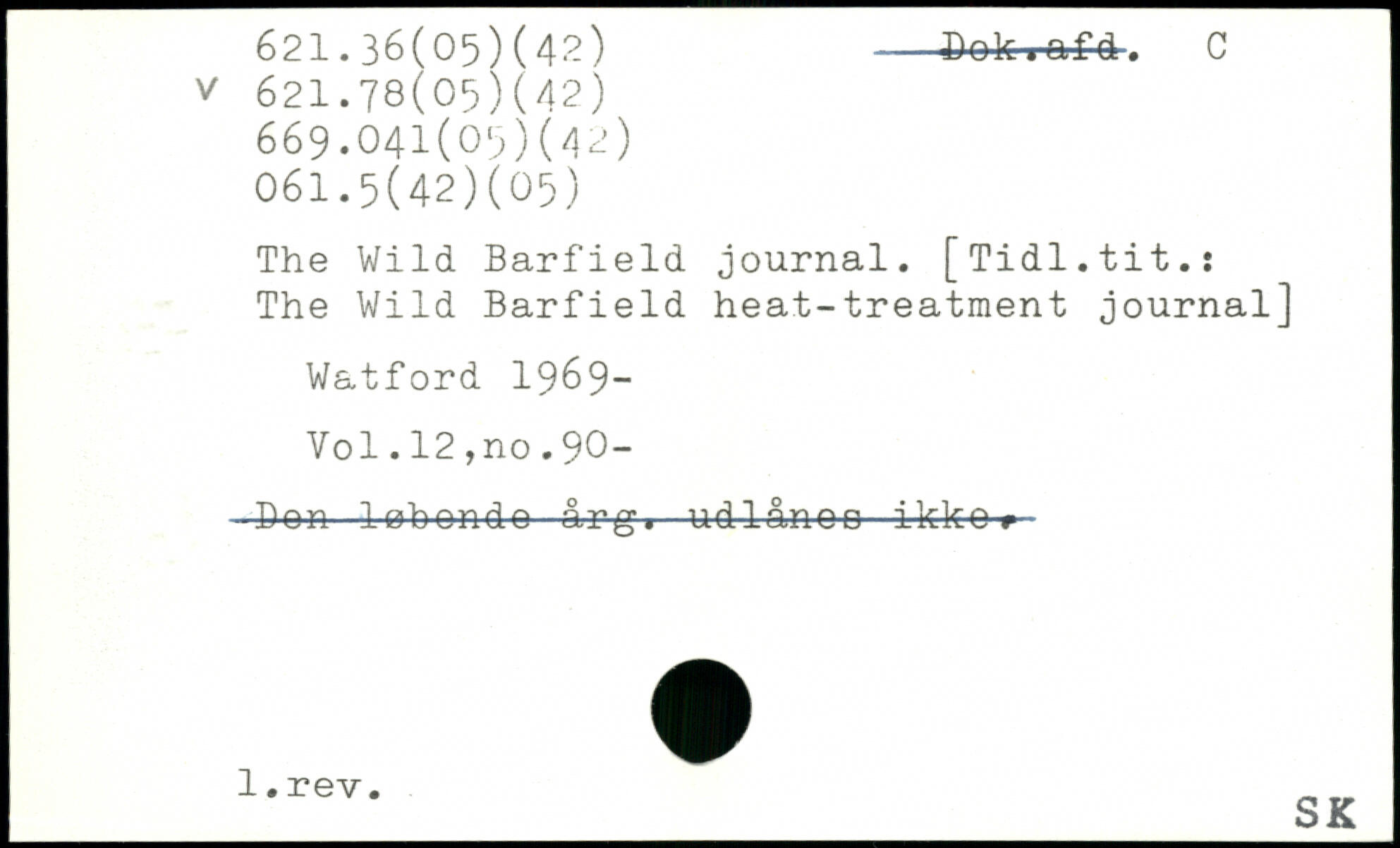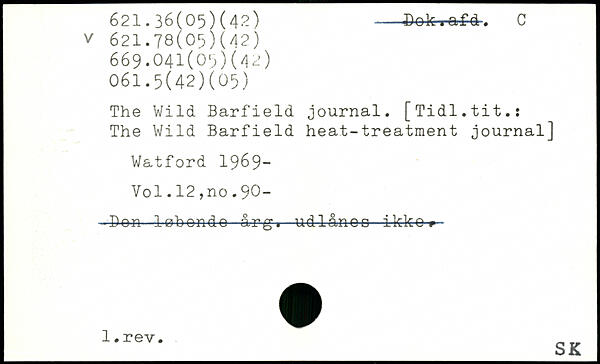 The Wild Barfield journal. [Tidl.tit.: The Wild Barfield heat-treatment journal] Watford 196 9—