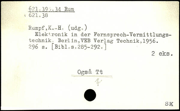 Elektronik in der Fernsprech-Vermittlungs-technik, Berlin,VEB Verlag Technik,1956. 296 s. [Bihlo So 285“292o]