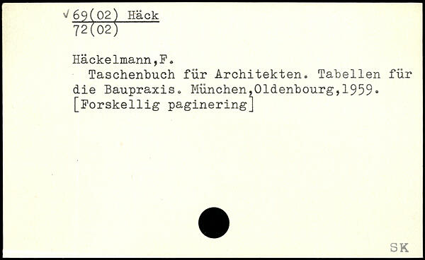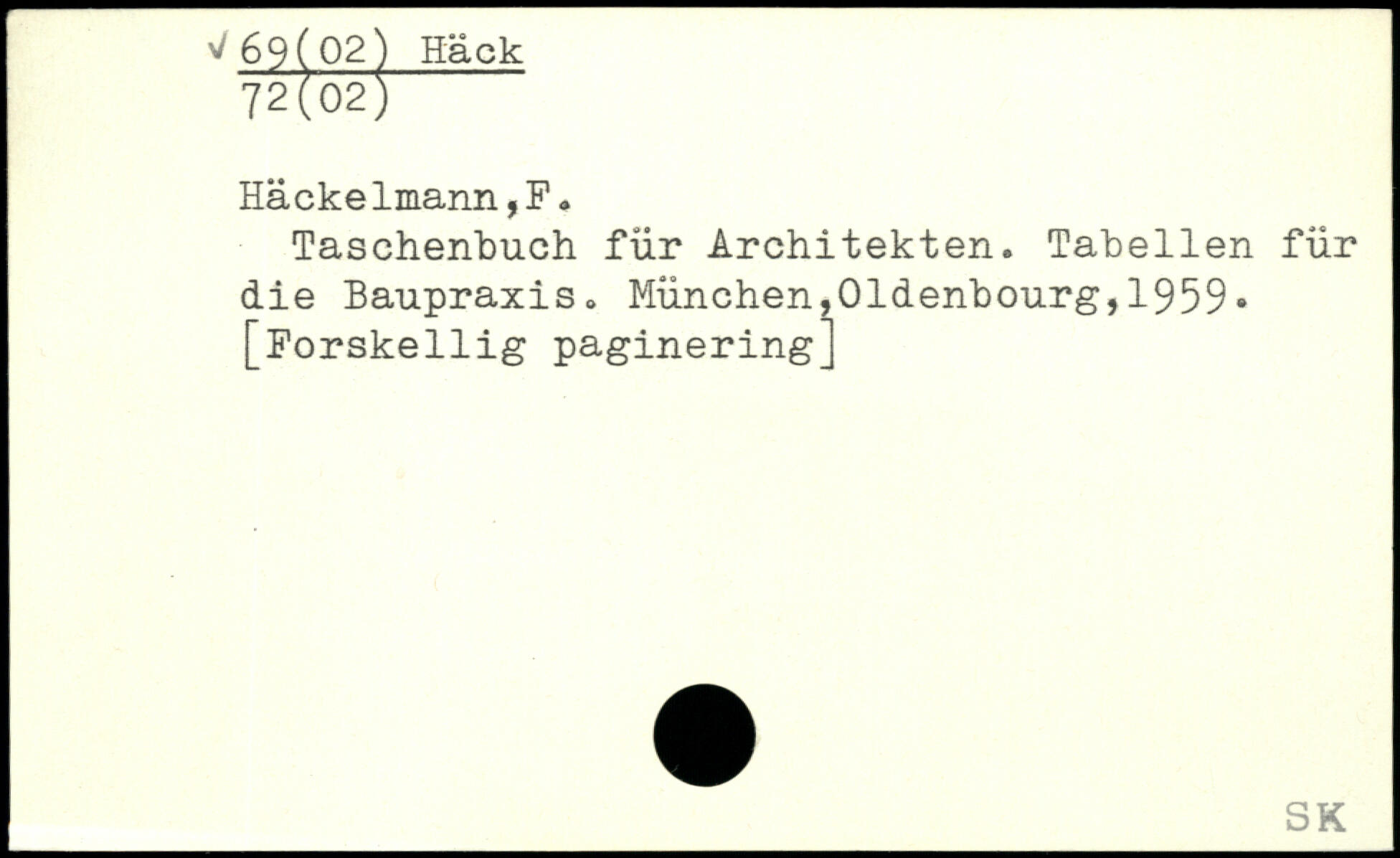 Taschenbuch für Architekten. Tabellen für die Baupraxis,