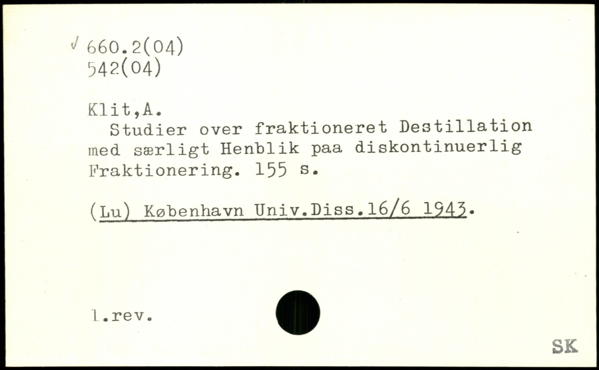 Studier over fraktioneret Destillation med særligt Henblik paa diskontinuerlig Fraktionering.