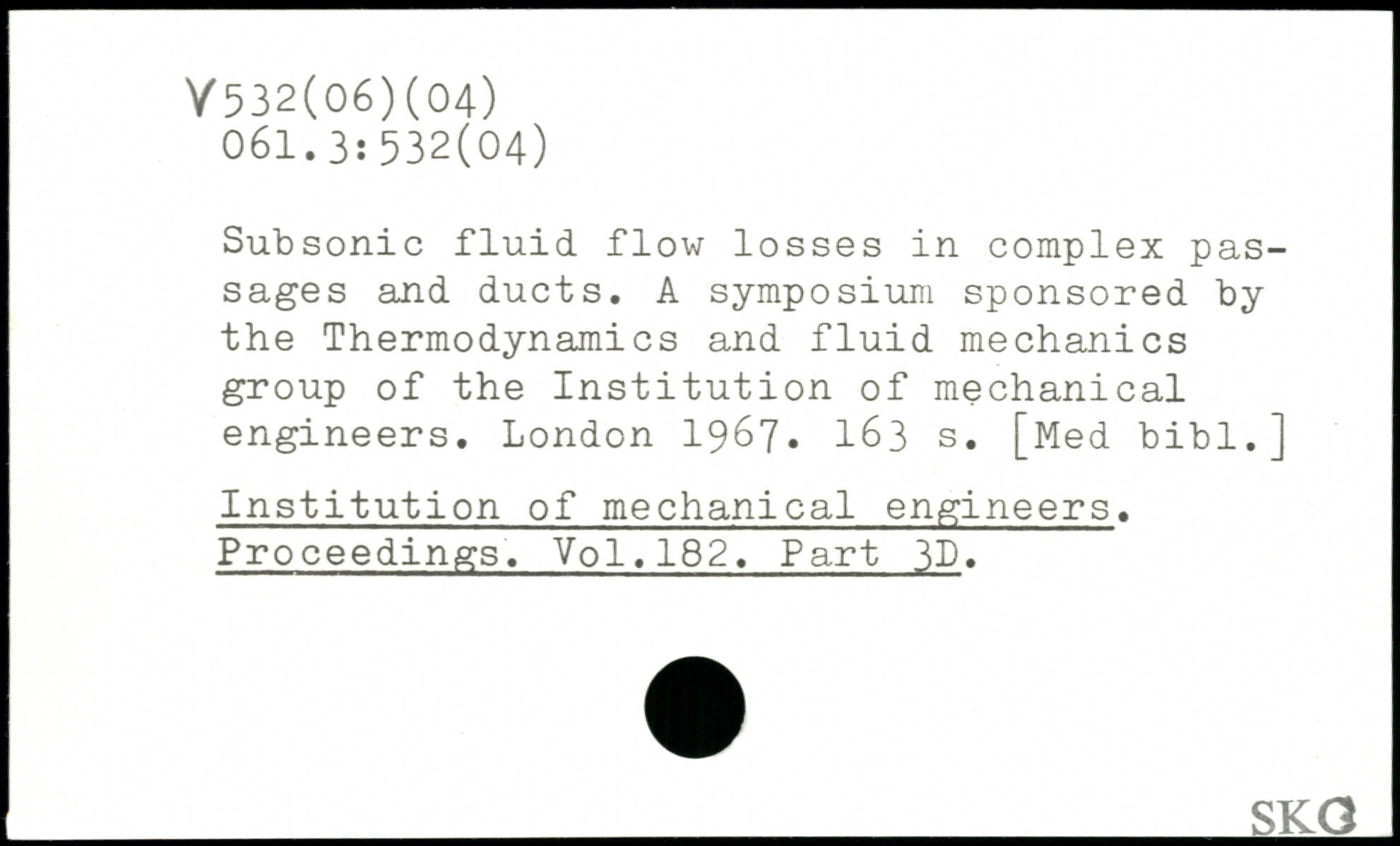 Subsonic fluid flow losses in complex passages and ducts. A symposium sponsored by the Thermodynamics and fluid mechanics group of the Institution of mechanical engineers.