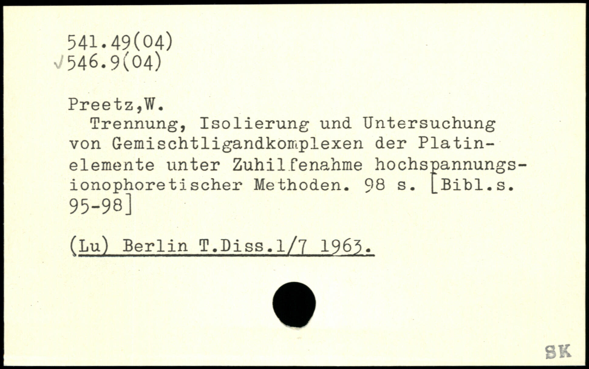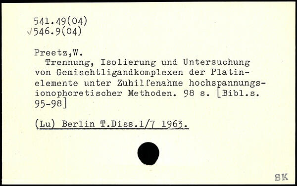 Trennung, Isolierung und Untersuchung von Gemischtligandkomplexen der Platinelemente unter Zuhilfenahme hochspannungs-ionophoretischer Methoden.