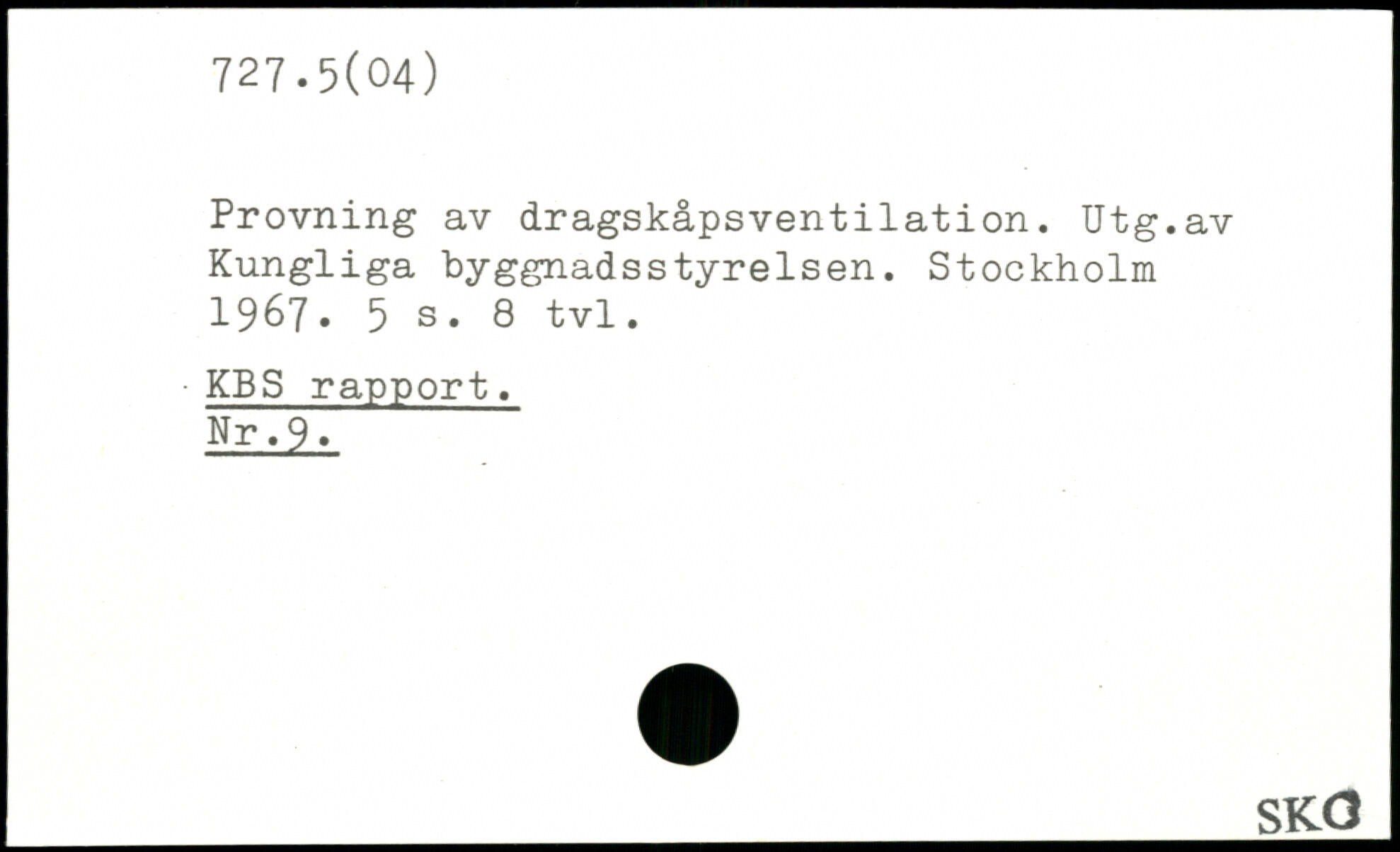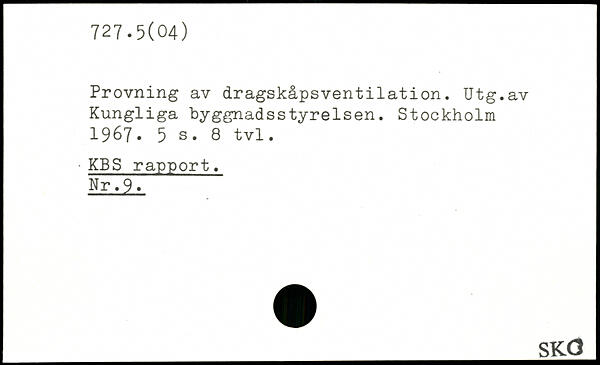 Provning av dragskåpsventilation. Utg.av Kungliga byggnadsstyrelsen.