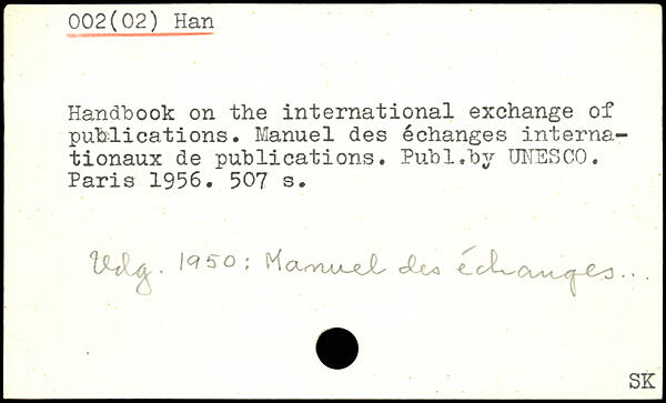 Handbook on the international exchange of publications. Manuel des échanges internationaux de publications.