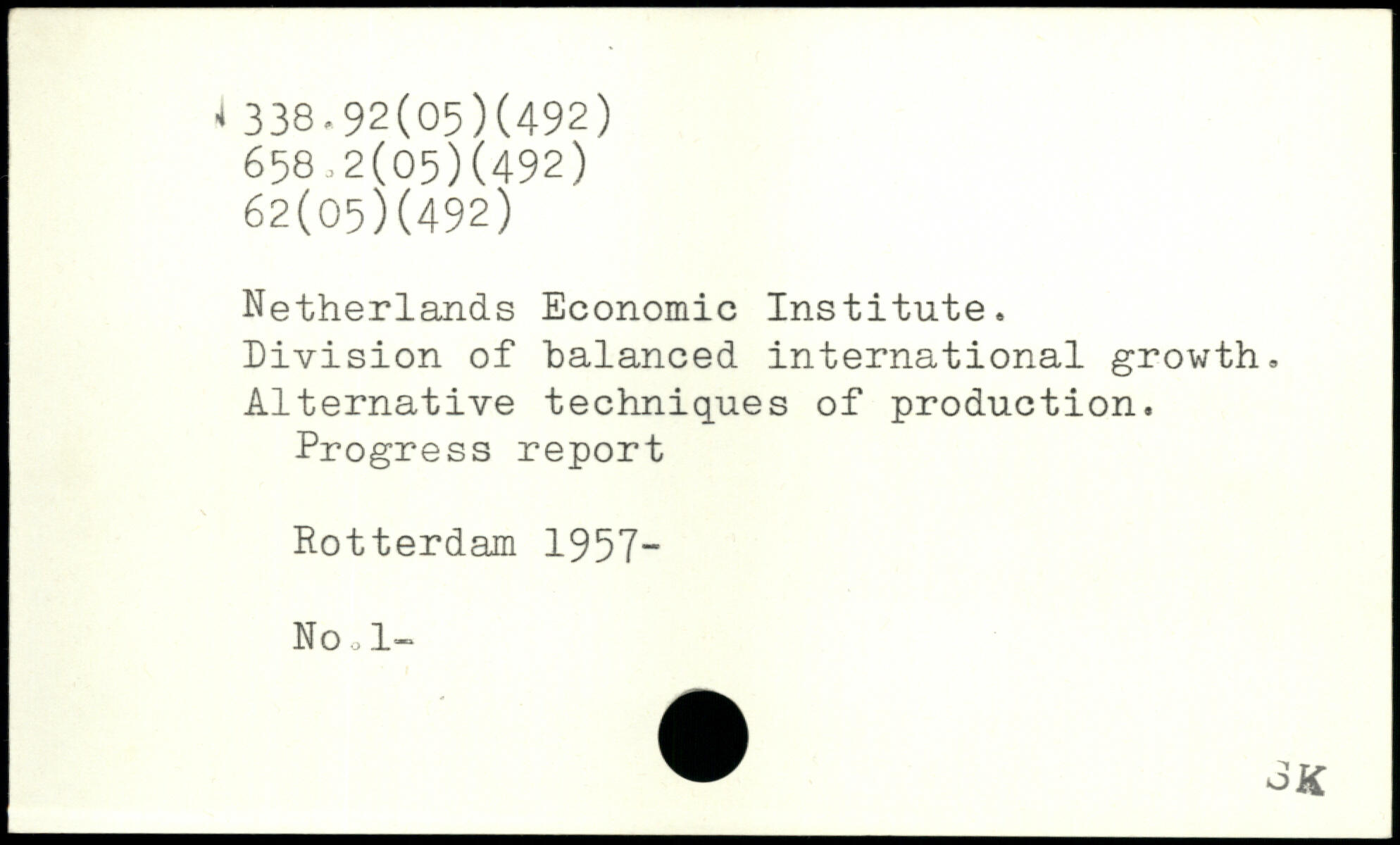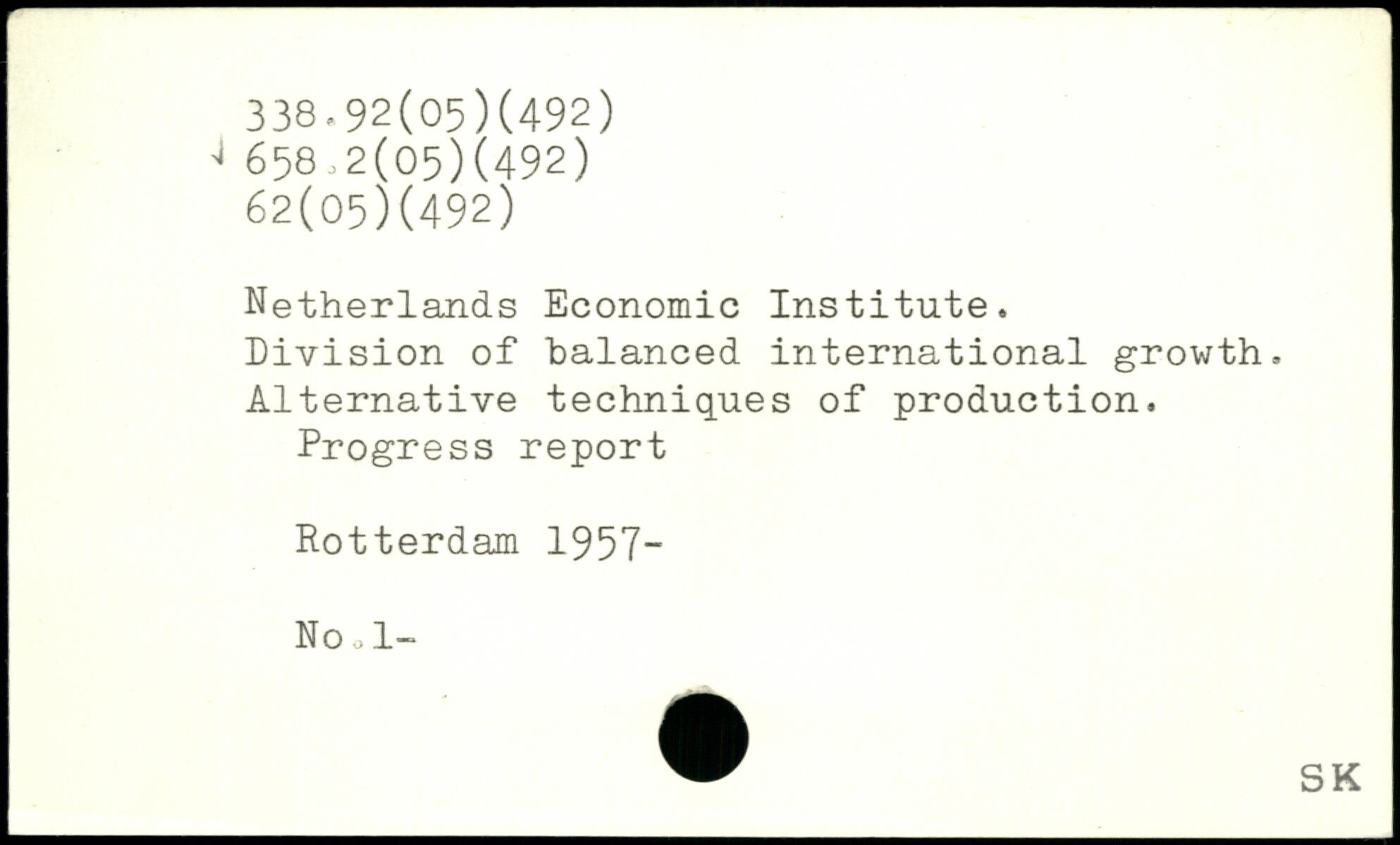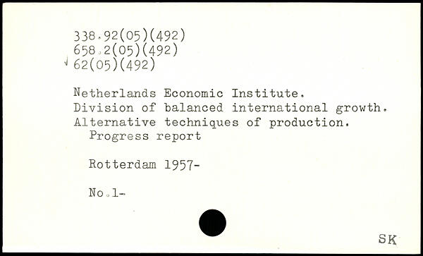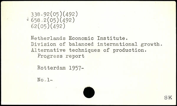 Netherlands Economic Institute. Division of balanced international growth. Alternative techniques of production. Progress report Rotterdam 1957- No o 1-
