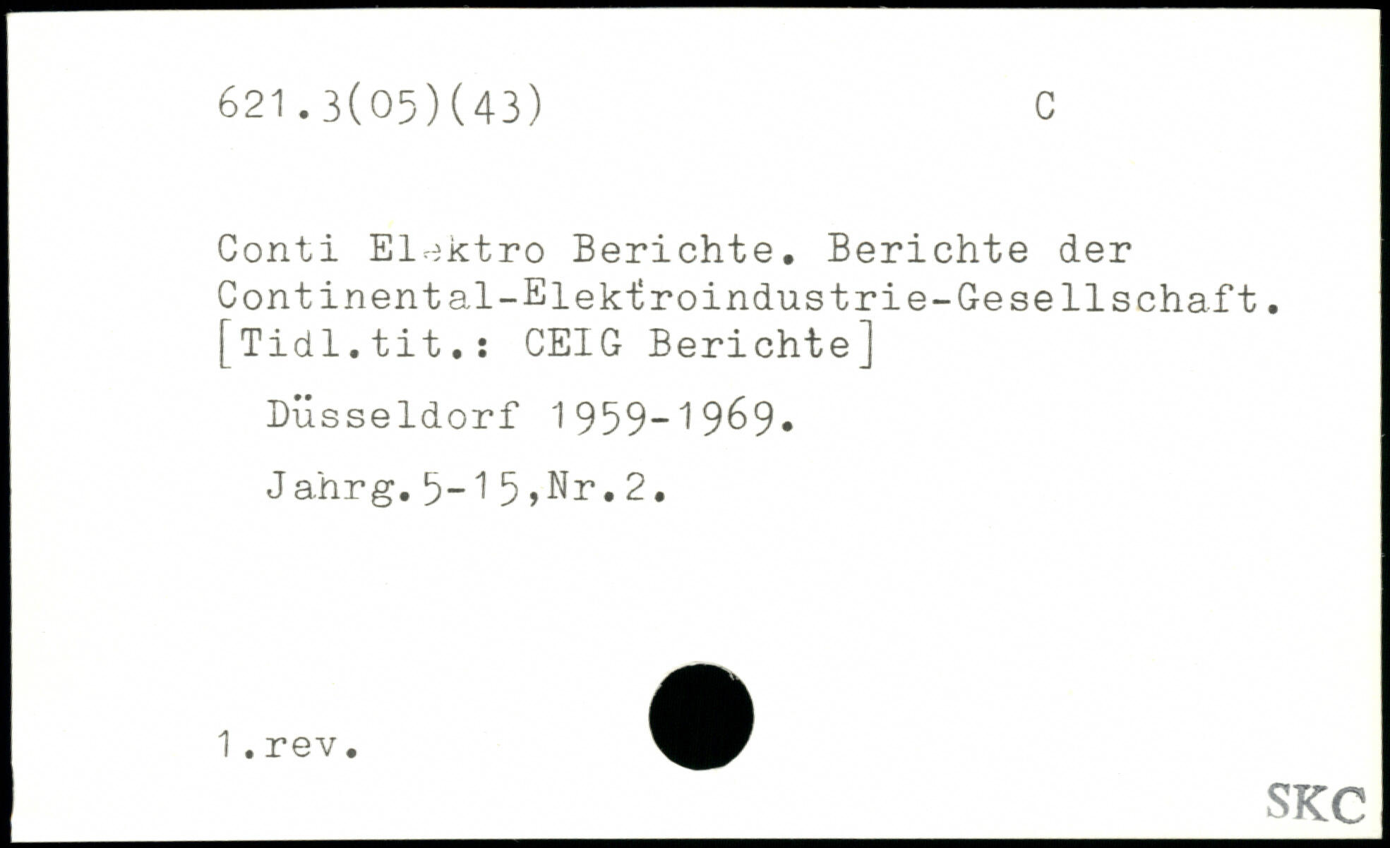 Conti Elektro Berichte. Berichte der Continental-Elektroindustrie-Gesellschaft. [Tidl.tit.: CEIG Berichte] Düsseldorf 1959-1969. Jahrg.5-15,Nr.2.