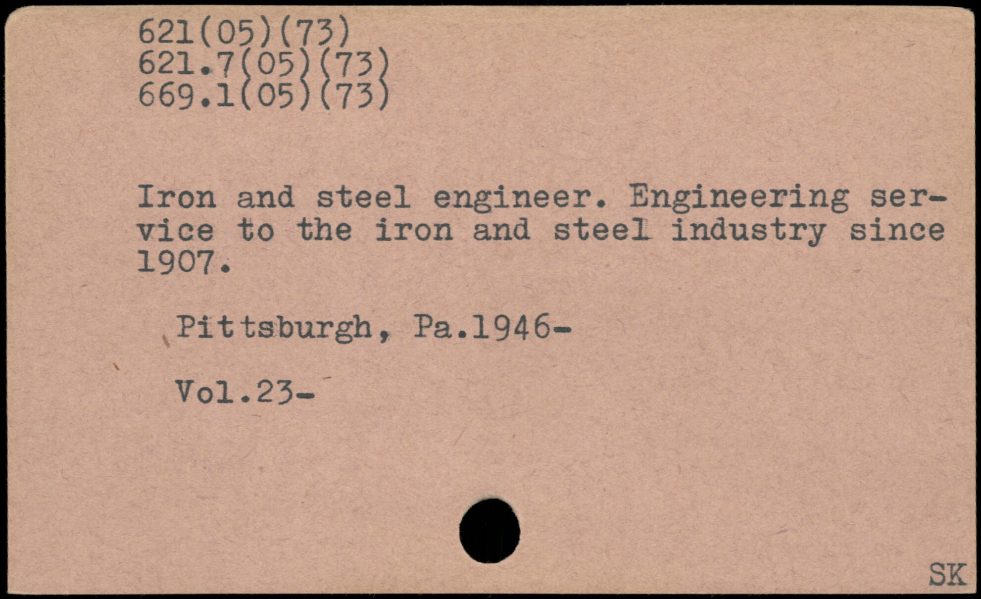 Iron and steel engineer. Engineering service to the iron and steel industry since 1907. Pittsburgh, Pa.1946-